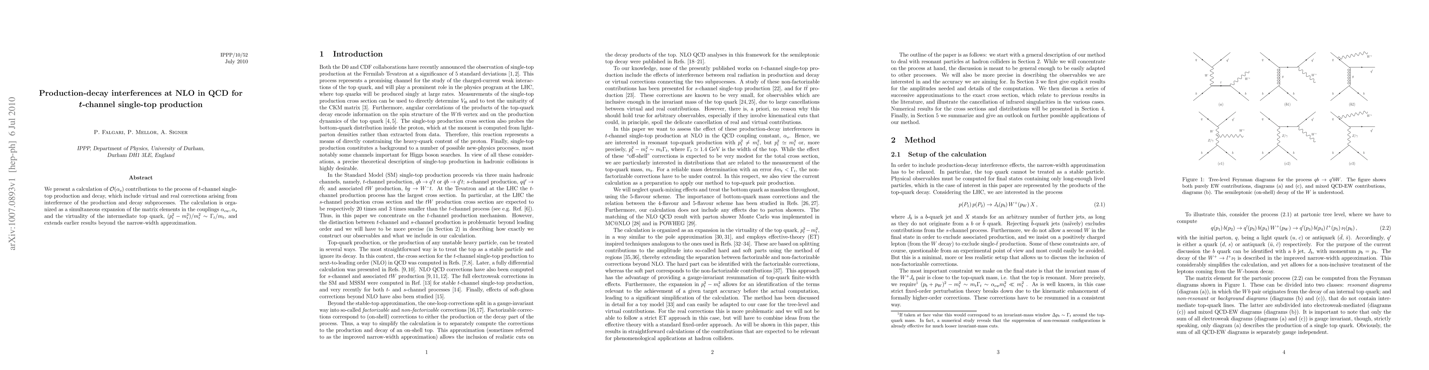 We present a calculation of O(\alpha_s) contributions to the process of t-channel single-top production and decay, which include virtual and real corrections arising from interference of the production and decay subprocesses. The calculation is organized as a simultaneous expansion of the matrix elements in the couplings \alpha_{ew},\alpha_s and the virtuality of the intermediate top quark, (p_t^2-m_t^2)/m_t^2 ~ \Gamma_t/m_t, and extends earlier results beyond the narrow-width approximation.
