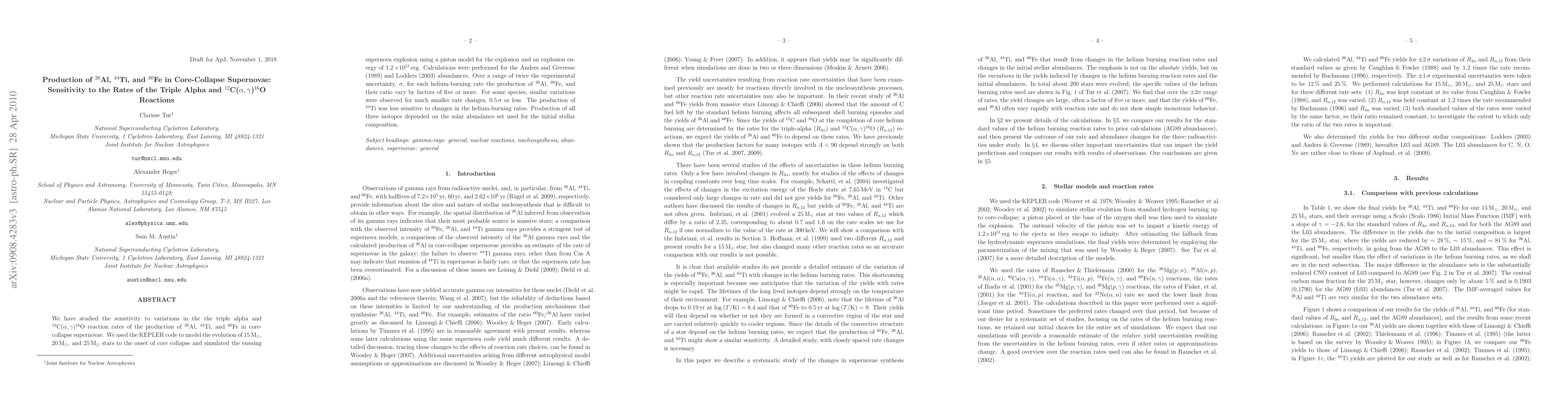 This study investigates how variations in the triple alpha and 12C(α,γ)16O reaction rates affect the production of 26Al, 44Ti, and 60Fe in core-collapse supernovae, using the KEPLER code. Results show significant changes in the production of these isotopes, with some varying by factors of five or more over twice the experimental uncertainty in the helium-burning rates.
