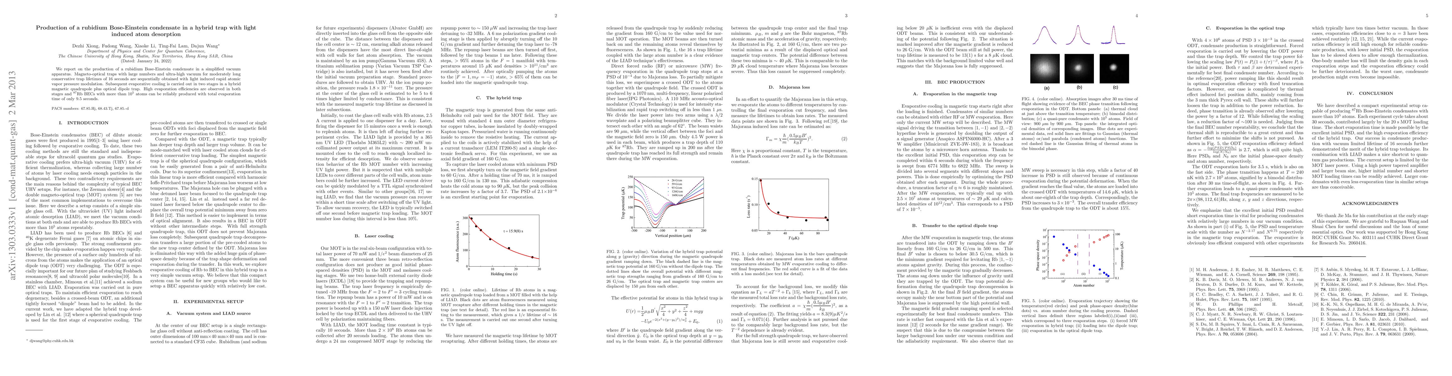 This paper details the creation of a rubidium Bose-Einstein condensate (BEC) using a hybrid magnetic quadrupole and optical dipole trap, achieving high evaporation efficiency and producing BECs with over 10$^5$ atoms in a total evaporation time of 9.5 seconds. The process utilizes light-induced atom desorption for rapid vapor pressure modulation in a simplified vacuum setup.