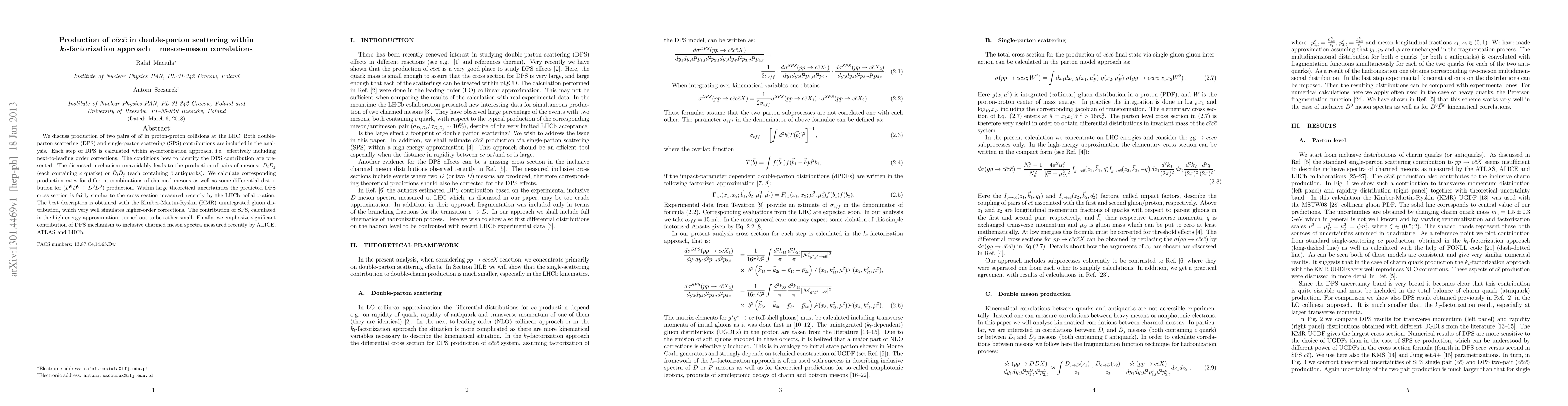 This paper explores the production of two pairs of $c \bar c$ in proton-proton collisions at the LHC using the $k_t$-factorization approach, focusing on double-parton scattering (DPS) contributions. It predicts DPS-induced production rates for various charmed meson pairs and finds a DPS cross section comparable to recent LHCb measurements, with the Kimber-Martin-Ryskin unintegrated gluon distribution providing the best fit.