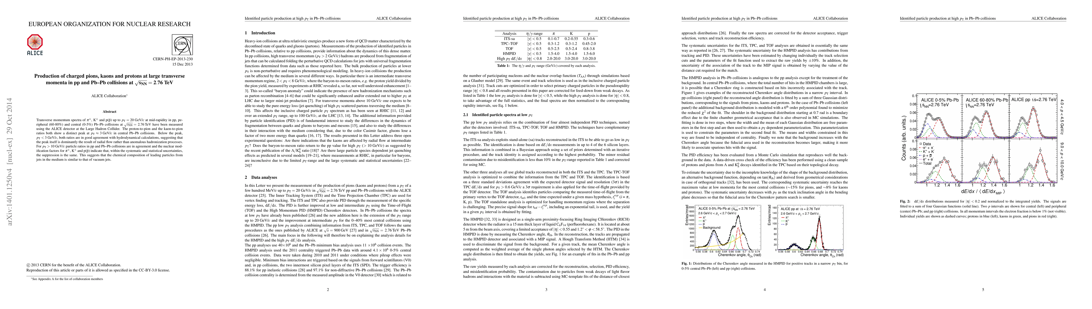 Researchers at ALICE detected charged particles in heavy ion and proton collisions, finding that proton-to-pion ratios peak at 3 GeV/c due to radial flow, similar to vacuum jets.