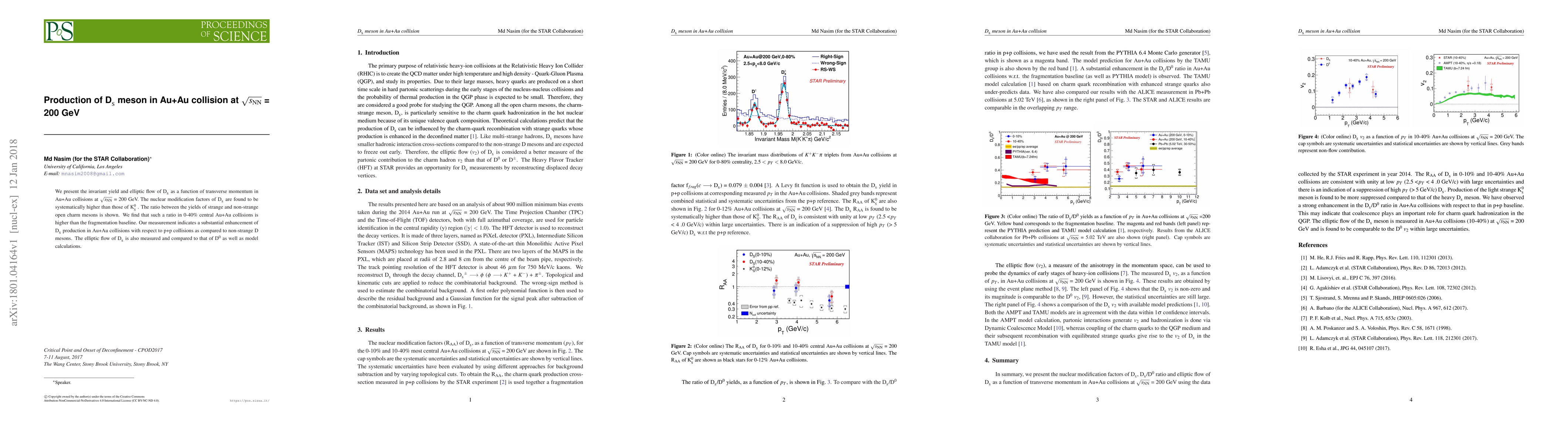 We present the invariant yield and elliptic flow of D$_{\rm_{S}}$ as a function of transverse momentum in Au+Au collisions at $\sqrt{s_{\rm{NN}}}$ = 200 GeV. The nuclear modification factors of D$_{\rm_{S}}$ are found to be systematically higher than those of K$^{0}_{\rm_{S}}$ . The ratio between the yields of strange and non-strange open charm mesons is shown. We find that such a ratio in 0-40$\%$ central Au+Au collisions is higher than the fragmentation baseline. Our measurement indicates a substantial enhancement of D$_{\rm_{S}}$ production in Au+Au collisions with respect to p+p collisions as compared to non-strange D mesons. The elliptic flow of D$_{\rm_{S}}$ is also measured and compared to that of D$^{0}$ as well as model calculations.