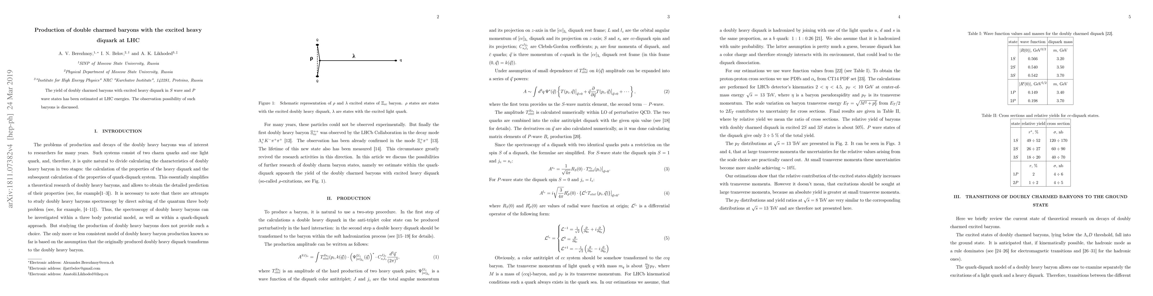 The yield of doubly charmed baryons with excited heavy diquark in $S$ wave and $P$ wave states has been estimated at LHC energies. The observation possibility of such baryons is discussed.