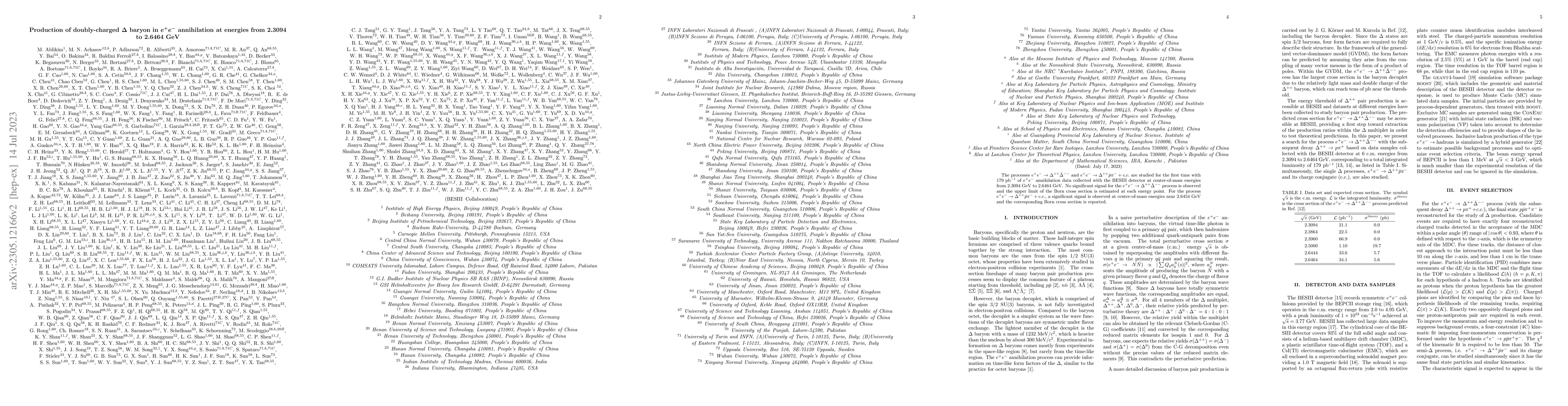 This study investigates the production of doubly-charged $\Delta$ baryons in $e^{+}e^{-}$ annihilation at energies from 2.3094 to 2.6464 GeV using BESIII data. No significant signal was found for the $\Delta^{++}\bar{\Delta}^{--}$ process, but a significant signal was observed for the $\Delta^{++} \bar{p} \pi^{-}$ process near 2.6454 GeV.
