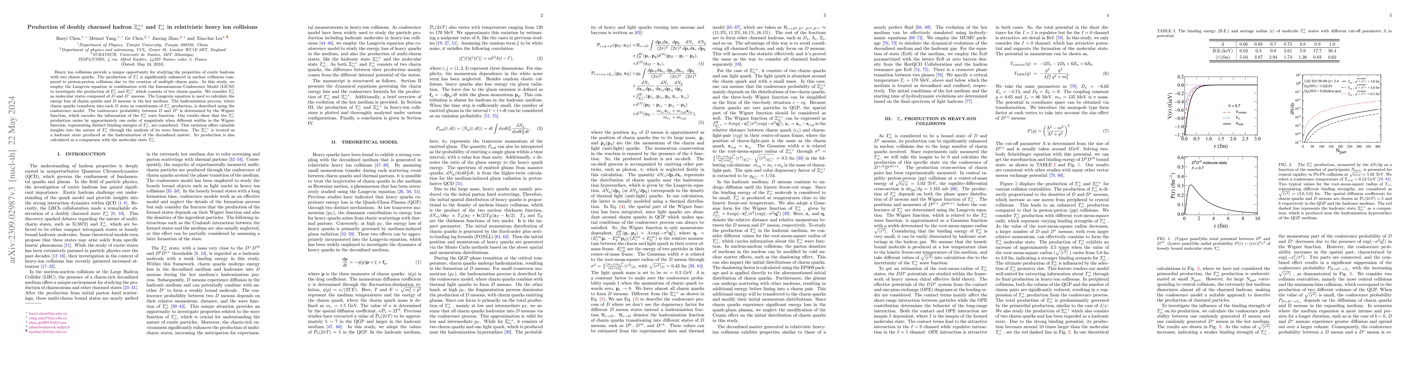This study investigates the production of doubly charmed hadrons $T_{cc}^+$ and $\Xi_{cc}^{++}$ in relativistic heavy ion collisions using the Langevin equation and the Instantaneous Coalescence Model. Results show a significant enhancement of $T_{cc}^+$ production due to multiple charm pair creation, with production varying substantially based on binding energy represented by different widths in the Wigner function.