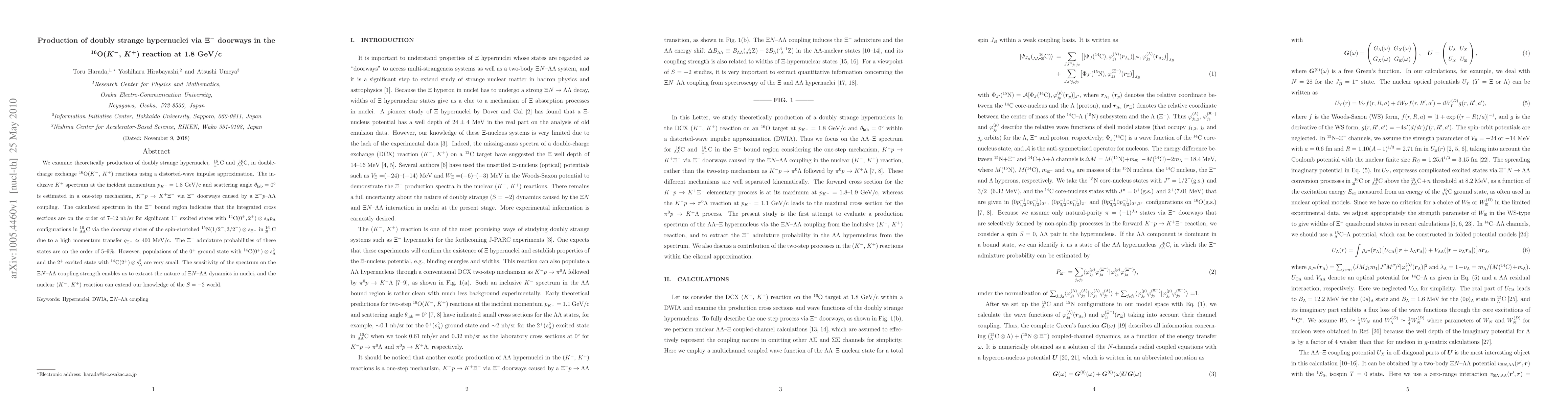 We examine theoretically production of doubly strange hypernuclei, 16 {\Xi}-C and 16 {\Lambda}{\Lambda}C, in doublecharge exchange 16O(K-, K+) reactions using a distorted-wave impulse approximation. The inclusive K+ spectrum at the incident momentum pK- = 1.8 GeV/c and scattering angle {\theta}lab = 0^{\circ} is estimated in a one-step mechanism, K-p \to K+{\Xi}- via {\Xi}- doorways caused by a {\Xi}-p-{\Lambda}{\Lambda} coupling. The calculated spectrum in the {\Xi}- bound region indicates that the integrated cross sections are on the order of 7-12 nb/sr for significant 1- excited states with 14C(0+, 2+) \otimes s{\Lambda}p{\Lambda} configurations in 16 {\Lambda}{\Lambda}C via the doorway states of the spin-stretched 15N(1/2-, 3/2-) \otimes s{\Xi}- in 16 {\Xi}-C due to a high momentum transfer q{\Xi}- \approx 400 MeV/c. The {\Xi}- admixture probabilities of these states are on the order of 5-9%. However, populations of the 0+ ground state with 14C(0+) \otimes s2{\Lambda} and the 2+ excited state with 14C(2+) \otimes s2 {\Lambda} are very small. The sensitivity of the spectrum on the {\Xi}N-{\Lambda}{\Lambda} coupling strength enables us to extract the nature of {\Xi}N-{\Lambda}{\Lambda} dynamics in nuclei, and the nuclear (K-, K+) reaction can extend our knowledge of the S = -2 world.