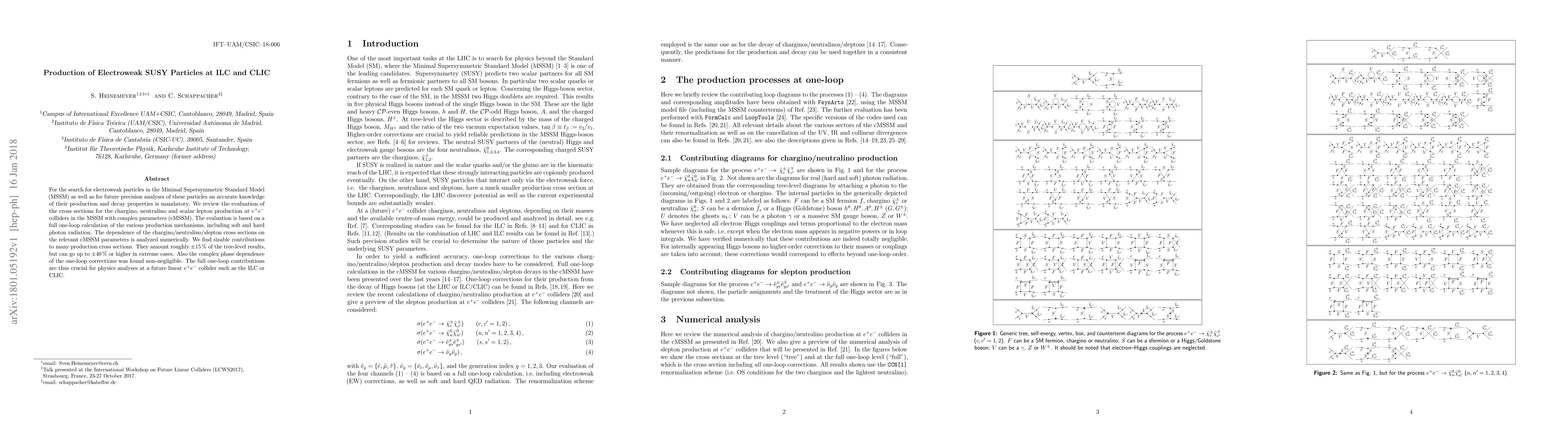 For the search for electroweak particles in the Minimal Supersymmetric Standard Model (MSSM) as well as for future precision analyses of these particles an accurate knowledge of their production and decay properties is mandatory. We review the evaluation of the cross sections for the chargino, neutralino and scalar lepton production at e+e- colliders in the MSSM with complex parameters (cMSSM). The evaluation is based on a full one-loop calculation of the various production mechanisms, including soft and hard photon radiation. The dependence of the chargino/neutralino/slepton cross sections on the relevant cMSSM parameters is analyzed numerically. We find sizable contributions to many production cross sections. They amount roughly +- 15% of the tree-level results, but can go up to +-40% or higher in extreme cases. Also the complex phase dependence of the one-loop corrections was found non-negligible. The full one-loop contributions are thus crucial for physics analyses at a future linear e+e- collider such as the ILC or CLIC.