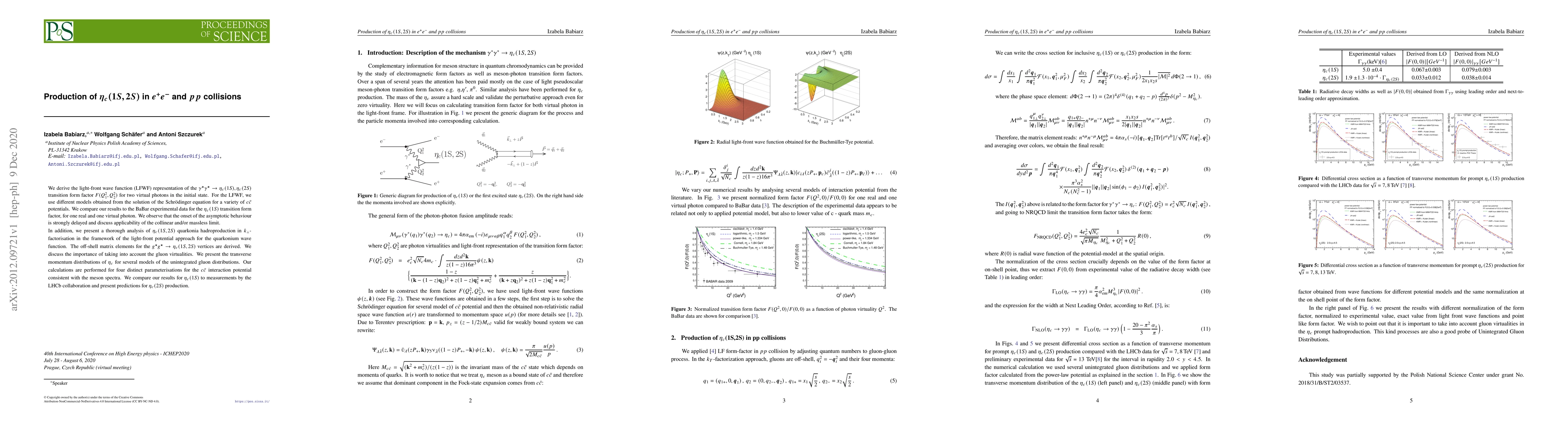 We derive the light-front wave function (LFWF) representation of the $\gamma^{\star} \gamma^{\star} \to \eta_{c} (1S),\eta_{c}(2S)$ transition form factor $F(Q^2_1,Q^2_2)$ for two virtual photons in the initial state. For the LFWF, we use different models obtained from the solution of the Schr\"odinger equation for a variety of $c\bar{c}$ potentials. We compare our results to the BaBar experimental data for the $\eta_{c}(1S)$ transition form factor, for one real and one virtual photon. We observe that the onset of the asymptotic behaviour is strongly delayed and discuss applicability of the collinear and/or massless limit. In addition, we present a thorough analysis of $\eta_{c}(1S,2S)$ quarkonia hadroproduction in $k_{\perp}$-factorisation in the framework of the light-front potential approach for the quarkonium wave function. The off-shell matrix elements for the $g^{\star} g^{\star} \to \eta_{c} (1S,2S)$ vertices are derived. We discuss the importance of taking into account the gluon virtualities. We present the transverse momentum distributions of $\eta_c$ for several models of the unintegrated gluon distributions. Our calculations are performed for four distinct parametrizations for the $c\bar{c}$ interaction potential consistent with the meson spectra. We compare our results for $\eta_{c}(1S)$ to measurements by the LHCb collaboration and present predictions for $\eta_{c}(2S)$ production.