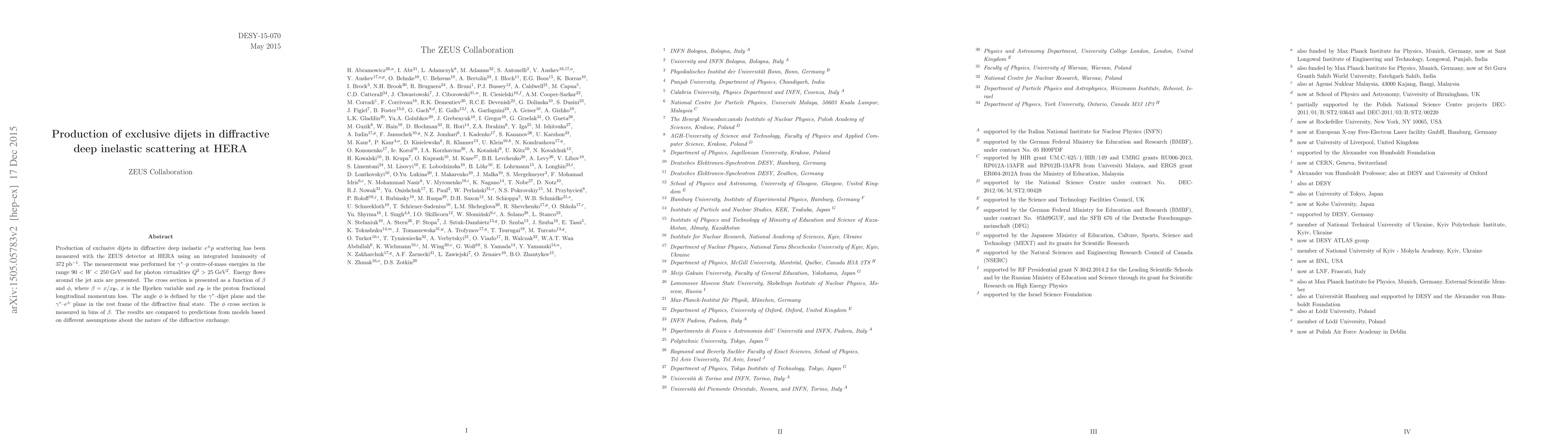 This paper reports on the measurement of exclusive dijet production in diffractive deep inelastic $e^\pm p$ scattering at HERA using the ZEUS detector, with results presented as a function of $\beta$ and $\phi$. The findings are compared to theoretical models to understand the nature of diffractive exchange.