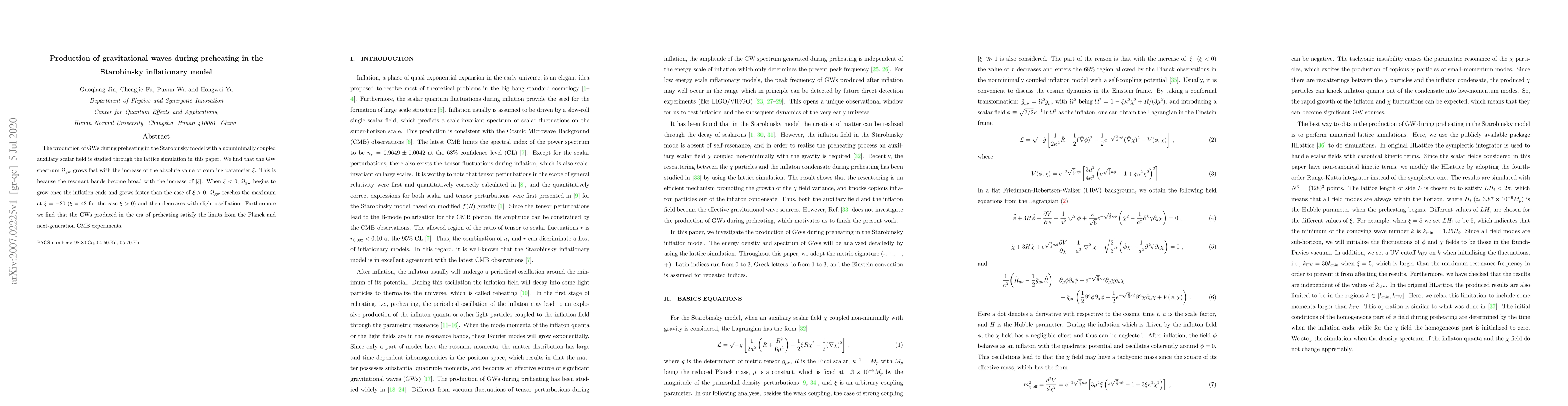 The production of GWs during preheating in the Starobinsky model with a nonminimally coupled auxiliary scalar field is studied through the lattice simulation in this paper. We find that the GW spectrum $\Omega_{\rm gw}$ grows fast with the increase of the absolute value of coupling parameter $\xi$. This is because the resonant bands become broad with the increase of $|\xi|$. When $\xi<0$, $\Omega_{\rm gw}$ begins to grow once the inflation ends and grows faster than the case of $\xi>0$. $\Omega_{\rm gw}$ reaches the maximum at $\xi=-20$ ($\xi=42$ for the case $\xi>0$) and then decreases with slight oscillation. Furthermore we find that the GWs produced in the era of preheating satisfy the limits from the Planck and next-generation CMB experiments.