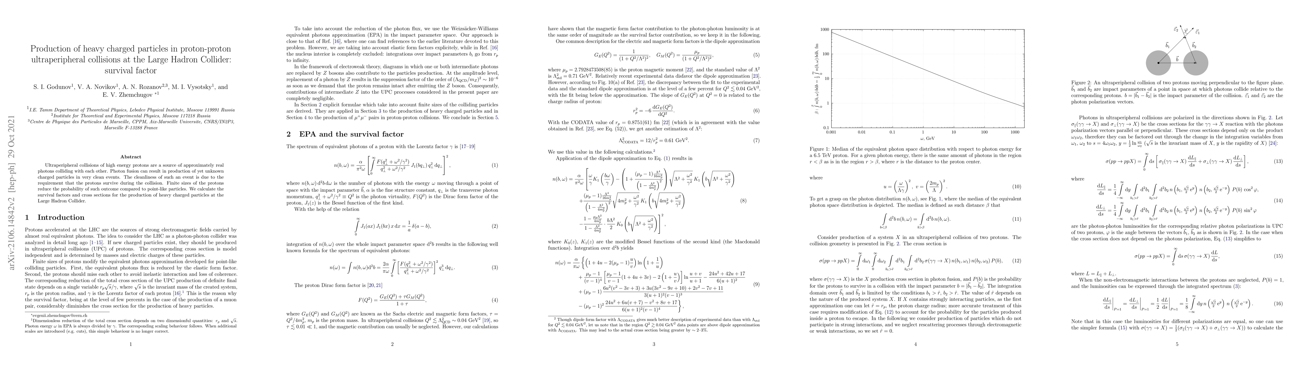 The paper presents detailed calculations of survival factors and cross sections using modified Bessel functions and empirical formulas for photon polarization and proton form factors.