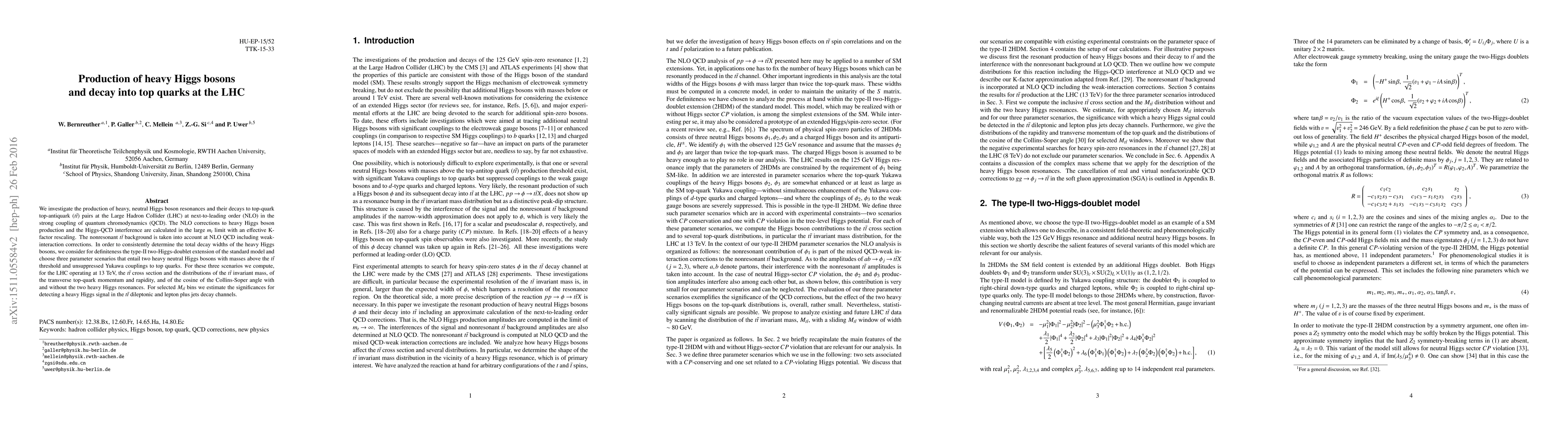 This paper investigates the production of heavy Higgs bosons at the LHC and their decay into top-quark pairs at next-to-leading order (NLO) QCD, calculating NLO corrections and interference effects. It assesses the significance of detecting these heavy Higgs bosons in various decay channels at the 13 TeV LHC.