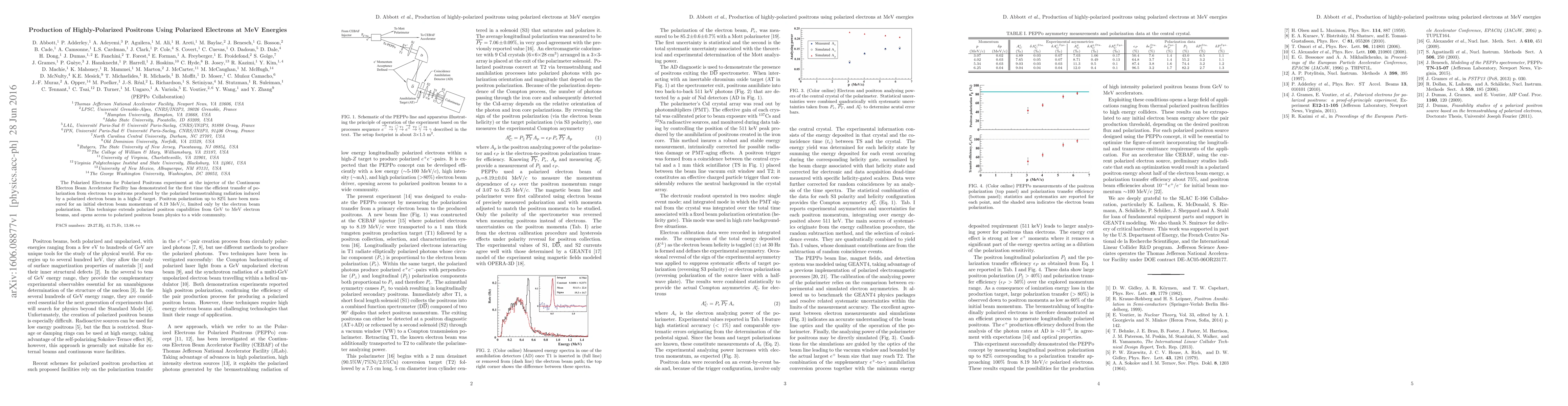 The Polarized Electrons for Polarized Positrons experiment at the Continuous Electron Beam Accelerator Facility has successfully transferred polarization from electrons to positrons via polarized bremsstrahlung radiation, achieving up to 82% positron polarization at MeV energies. This method broadens access to polarized positron beams for research.