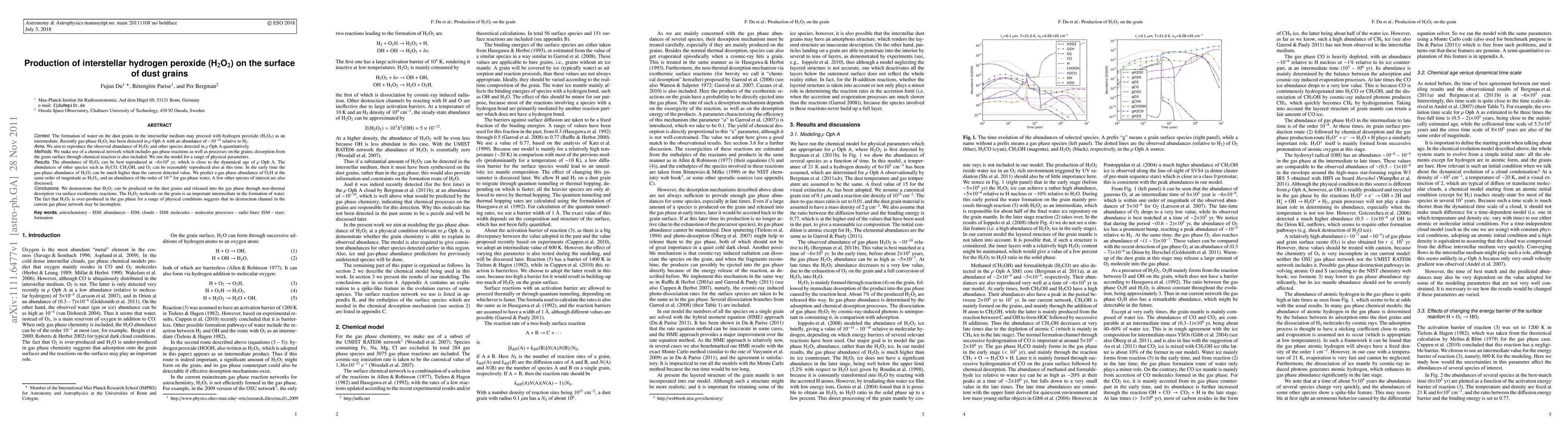 Context. The formation of water on the dust grains in the interstellar medium may proceed with hydrogen peroxide (H2O2) as an intermediate. Recently gas-phase H2O2 has been detected in {\rho} Oph A with an abundance of ~1E-10 relative to H2. Aims. We aim to reproduce the observed abundance of H2O2 and other species detected in {\rho} Oph A quantitatively. Methods. We make use of a chemical network which includes gas phase reactions as well as processes on the grains; desorption from the grain surface through chemical reaction is also included. We run the model for a range of physical parameters. Results. The abundance of H2O2 can be best reproduced at ~6E5 yr, which is close to the dynamical age of {\rho} Oph A. The abundances of other species such as H2CO, CH3OH, and O2 can be reasonably reproduced also at this time. In the early time the gas-phase abundance of H2O2 can be much higher than the current detected value. We predict a gas phase abundance of O2H at the same order of magnitude as H2O2, and an abundance of the order 1E-8 for gas phase water in {\rho} Oph A. A few other species of interest are also discussed. Conclusions. We demonstrate that H2O2 can be produced on the dust grains and released into the gas phase through non-thermal desorption via surface exothermic reactions. The H2O2 molecule on the grain is an important intermediate in the formation of water. The fact that H2O2 is over-produced in the gas phase for a range of physical conditions suggests that its destruction channel in the current gas phase network may be incomplete.