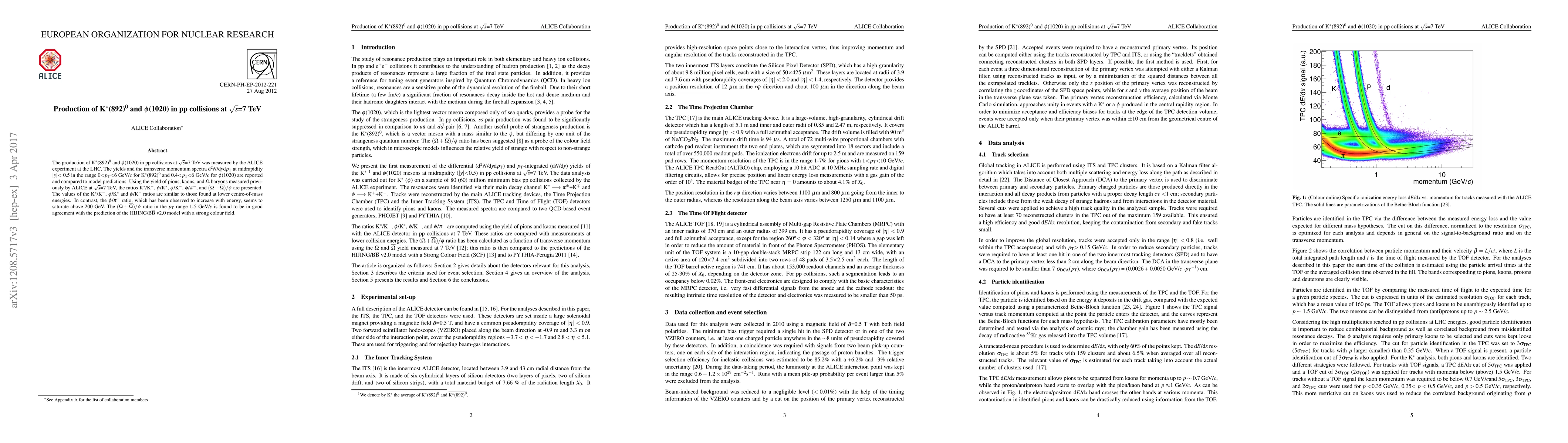 $\sqrt{s}=7$ TeV was measured by the ALICE experiment at the LHC. The yields