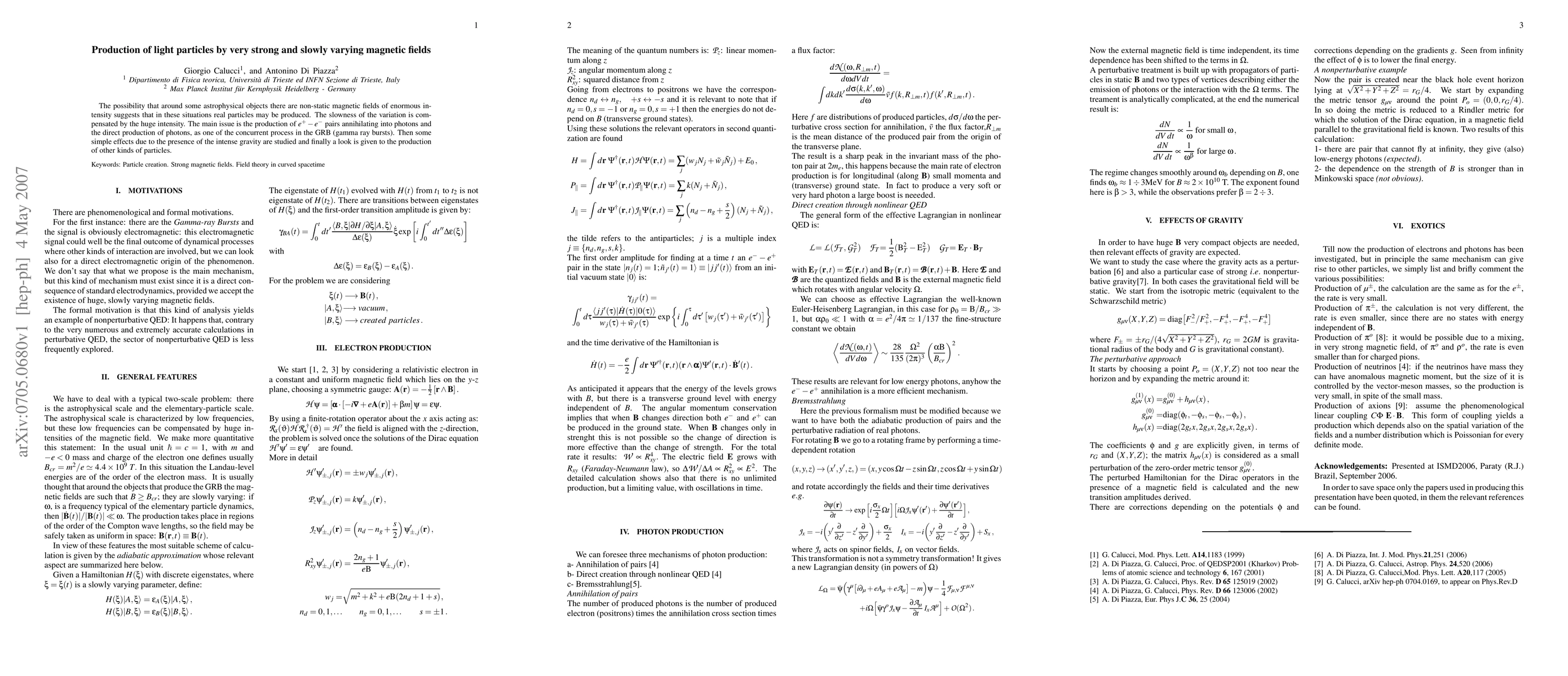 The possibility that around some astrophysical objects there are non-static magnetic fields of enormous intensity suggests that in these situations real particles may be produced. The slowness of the variation is compensated by the huge intensity. The main issue is the production of e+,e- pairs annihilating into photons and the direct production of photons, as one of the concurrent process in the GRB (gamma ray bursts). Then some simple effects due to the presence of the intense gravity are studied and finally a look is given to the production of other kinds of particles.