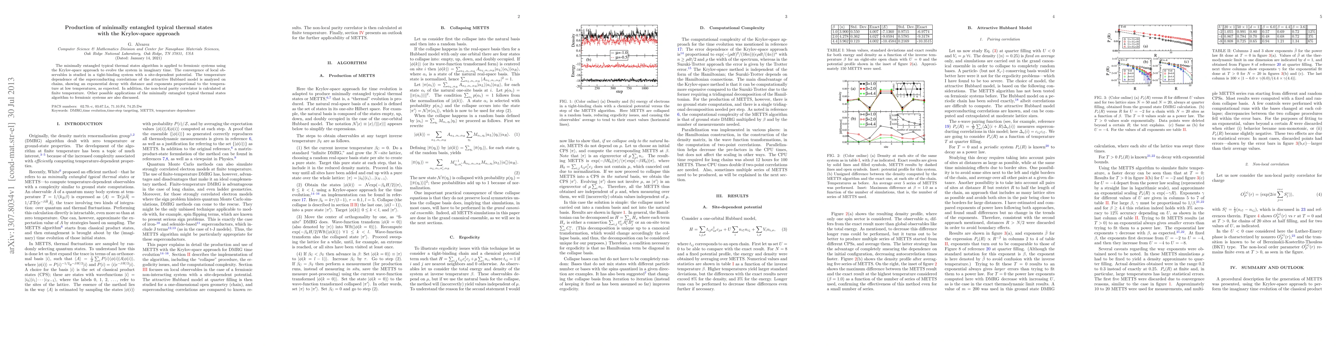 This paper applies the minimally entangled typical thermal states algorithm using the Krylov-space approach to study fermionic systems, focusing on the convergence of local observables in a tight-binding model. It analyzes superconducting correlations in the attractive Hubbard model, revealing an exponential decay with distance and temperature-dependent exponents at low temperatures.