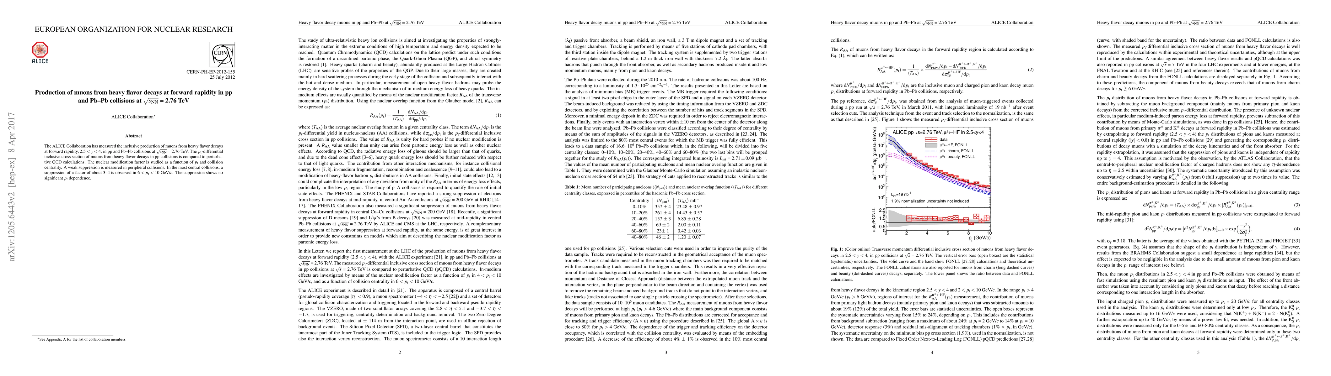 The ALICE Collaboration measured muon production from heavy flavour decays in pp and Pb-Pb collisions at 2.76 TeV, finding a weak suppression in peripheral Pb-Pb collisions and a significant suppression (3-4 times) in the most central collisions without $p_{\rm T}$ dependence. Comparisons with perturbative QCD calculations were also made.