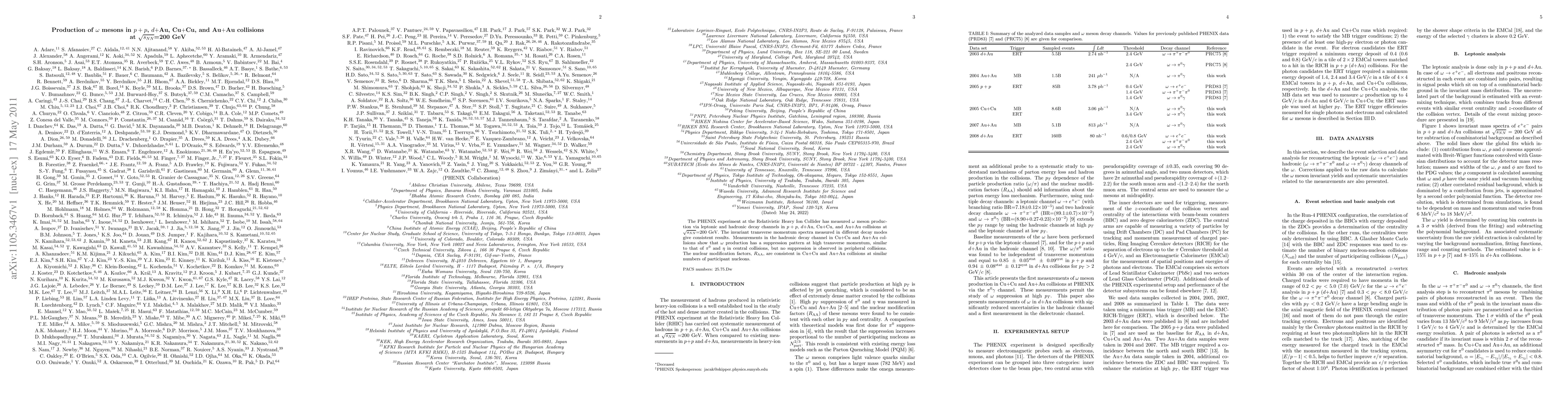The PHENIX experiment at RHIC measured omega meson production in various collision types at sqrt(s_NN) = 200 GeV, showing consistent spectra across decay modes. Omega mesons exhibit suppression in high-momentum central Cu+Cu and Au+Au collisions, similar to pi^0 and eta, but no suppression in peripheral collisions.