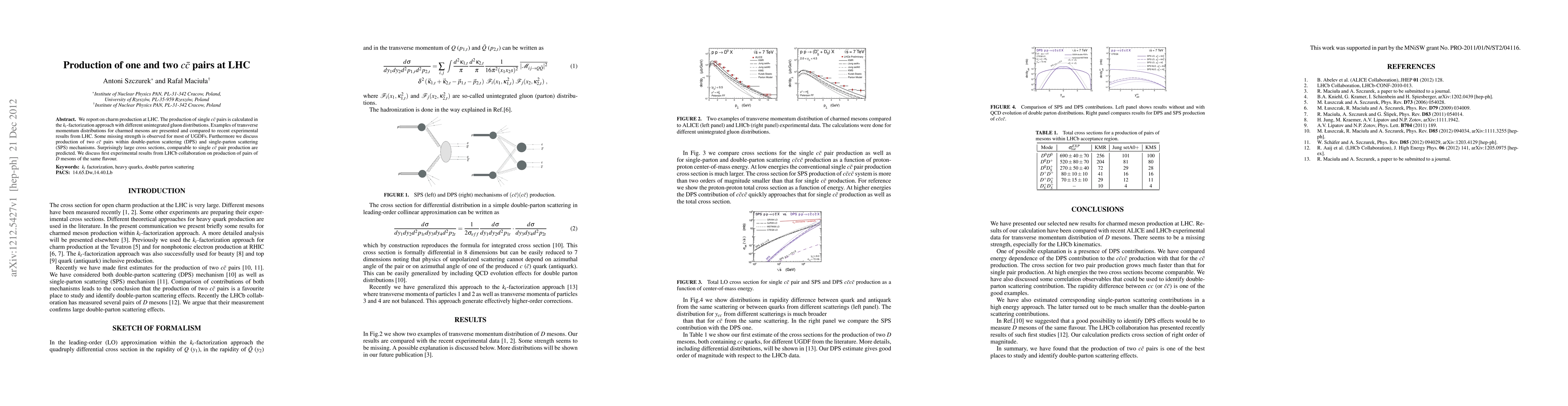 We report on charm production at LHC. The production of single $c \bar c$ pairs is calculated in the $k_t$-factorization approach with different unintegrated gluon distributions. Examples of transverse momentum distributions for charmed mesons are presented and compared to recent experimental results from LHC. Some missing strength is observed for most of UGDFs. Furthermore we discuss production of two $c \bar c$ pairs within double-parton scattering (DPS) and single-parton scattering (SPS) mechanisms. Surprisingly large cross sections, comparable to single $c \bar c$ pair production are predicted. We discuss first experimental results from LHCb collaboration on production of pairs of $D$ mesons of the same flavour.