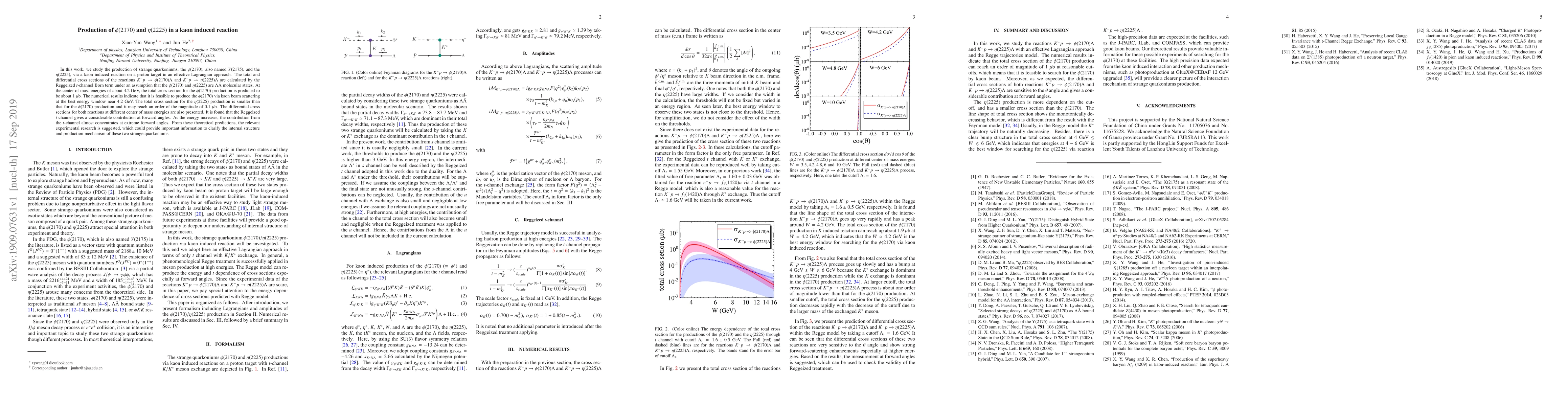This study investigates the production of $\phi(2170)$ and $\eta(2225)$ via kaon-induced reactions on protons using an effective Lagrangian approach. The predicted total cross sections suggest feasible production of $\phi(2170)$ at around 1 $\mu$b and $\eta(2225)$ at about 0.1 $\mu$b, indicating potential for experimental verification to elucidate their internal structures and production mechanisms.