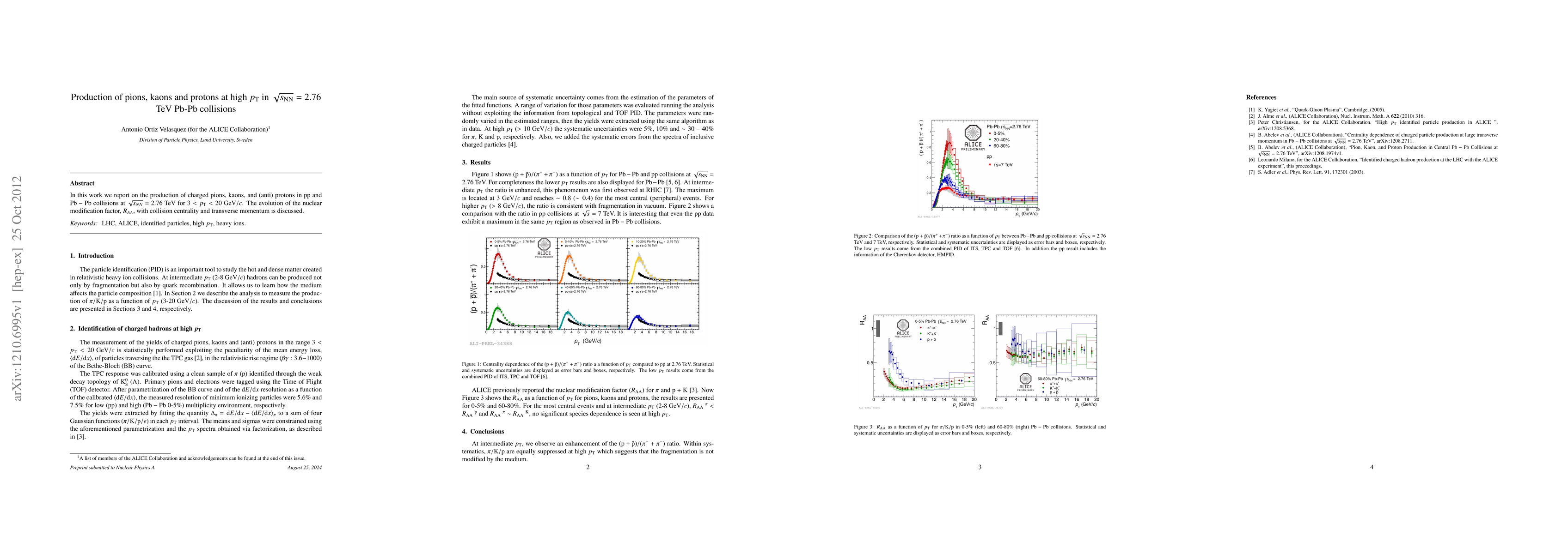 This study investigates the production of charged pions, kaons, and protons in both pp and Pb-Pb collisions at 2.76 TeV, focusing on the range of 3 < pT < 20 GeV/c. It analyzes the nuclear modification factor, RAA, to understand the effects of centrality and transverse momentum on particle production.