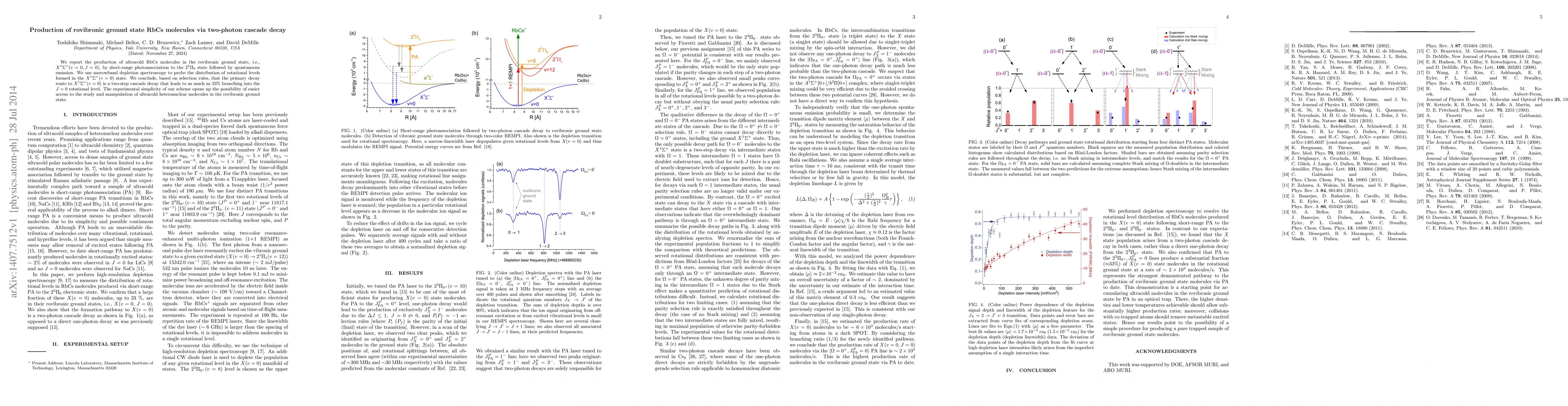 This paper reports the production of ultracold RbCs molecules in their rovibronic ground state via a two-photon cascade decay process, achieving up to 33% branching into the $J=0$ rotational level. The method's simplicity facilitates future studies of heteronuclear molecules.