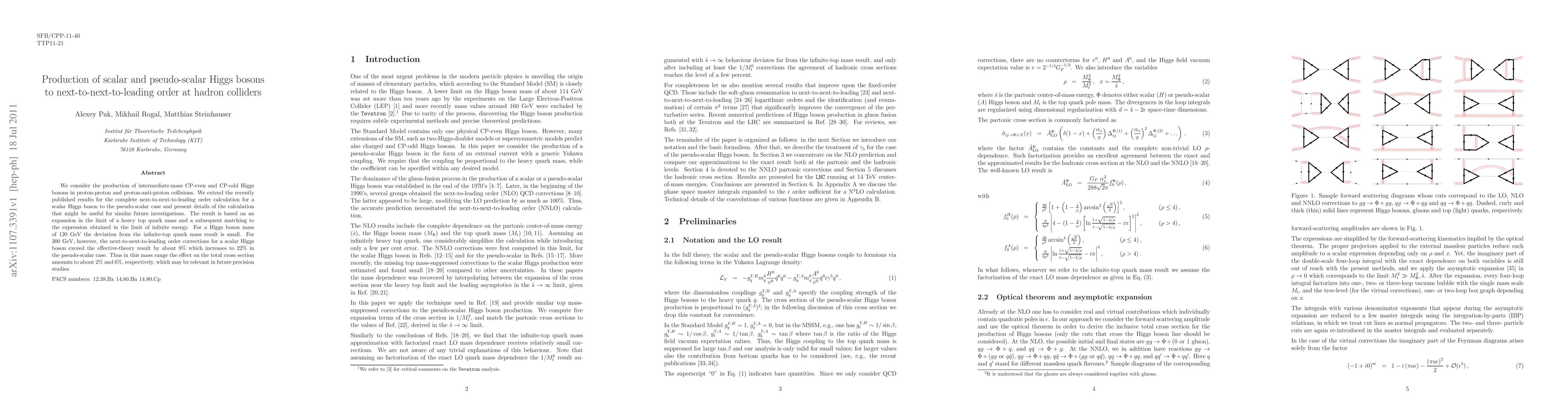 We consider the production of intermediate-mass CP-even and CP-odd Higgs bosons in proton-proton and proton-anti-proton collisions. We extend the recently published results for the complete next-to-next-to-leading order calculation for a scalar Higgs boson to the pseudo-scalar case and present details of the calculation that might be useful for similar future investigations. The result is based on an expansion in the limit of a heavy top quark mass and a subsequent matching to the expression obtained in the limit of infinite energy. For a Higgs boson mass of 120 GeV the deviation from the infinite-top quark mass result is small. For 300 GeV, however, the next-to-next-to-leading order corrections for a scalar Higgs boson exceed the effective-theory result by about 9% which increases to 22% in the pseudo-scalar case. Thus in this mass range the effect on the total cross section amounts to about 2% and 6%, respectively, which may be relevant in future precision studies.