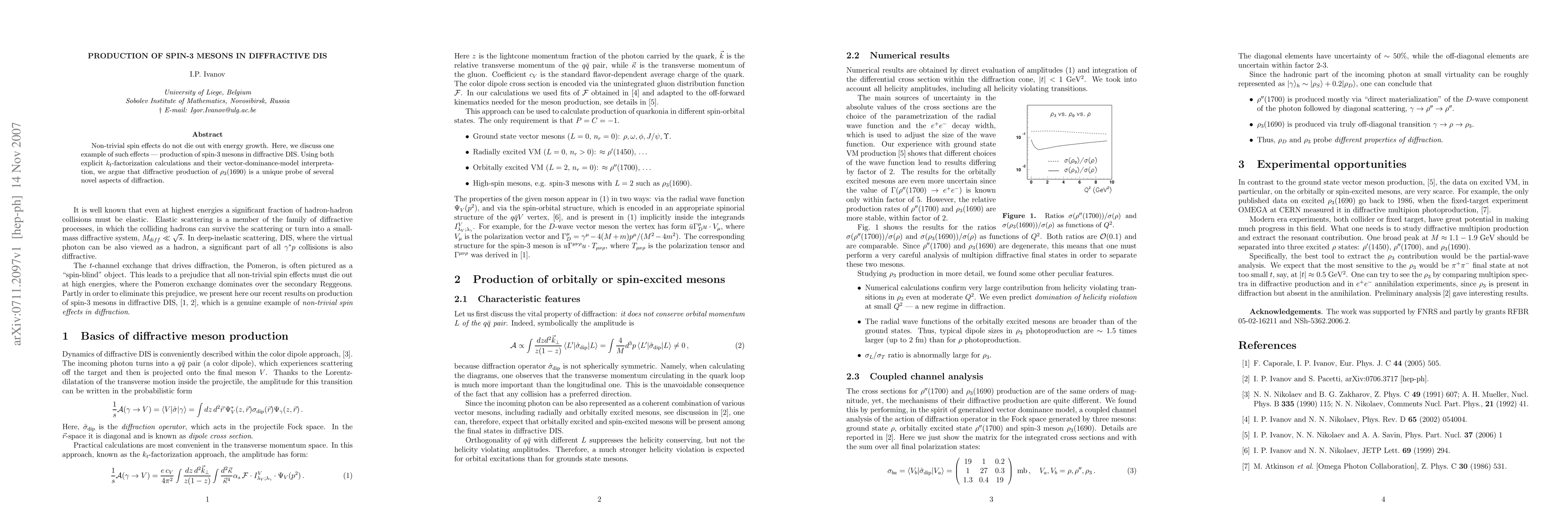 Non-trivial spin effects do not die out with energy growth. Here, we discuss one example of such effects -- production of spin-3 mesons in diffractive DIS. Using both explicit k_t-factorization calculations and their vector-dominance-model interpretation, we argue that diffractive production of rho_3(1690) is a unique probe of several novel aspects of diffraction.