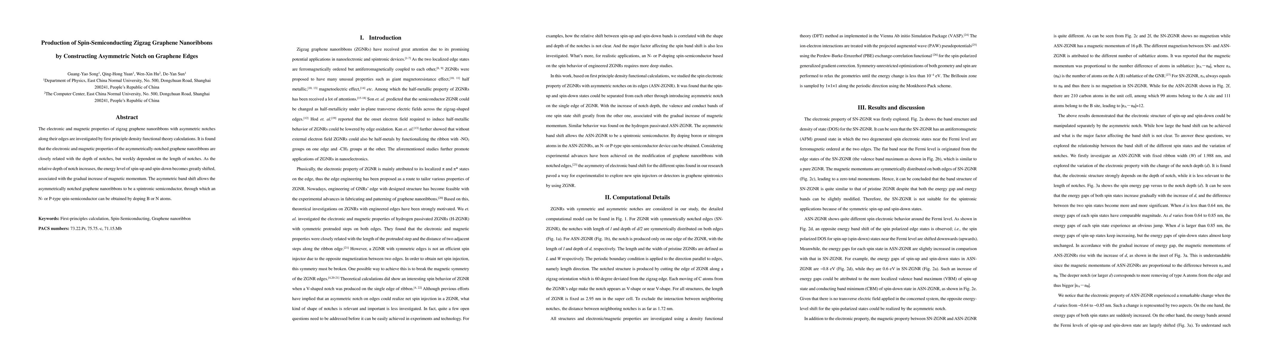 This study investigates zigzag graphene nanoribbons with asymmetric notches, revealing that notch depth significantly impacts electronic and magnetic properties, making them suitable for spintronic applications. Doping with B or N atoms can yield N- or P-type spin-semiconductors.