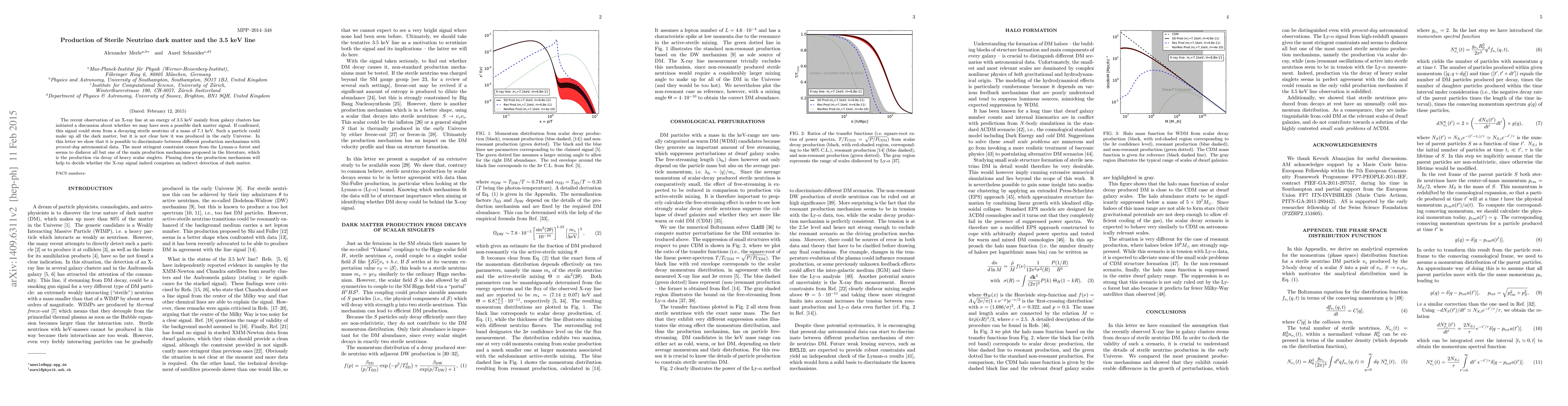 The recent observation of an X-ray line at an energy of 3.5 keV mainly from galaxy clusters has initiated a discussion about whether we may have seen a possible dark matter signal. If confirmed, this signal could stem from a decaying sterile neutrino of a mass of 7.1 keV. Such a particle could make up all the dark matter, but it is not clear how it was produced in the early Universe. In this letter we show that it is possible to discriminate between different production mechanisms with present-day astronomical data. The most stringent constraint comes from the Lyman-{\alpha} forest and seems to disfavor all but one of the main production mechanisms proposed in the literature, which is the production via decay of heavy scalar singlets. Pinning down the production mechanism will help to decide whether the X-ray signal indeed comprises an indirect detection of dark matter.