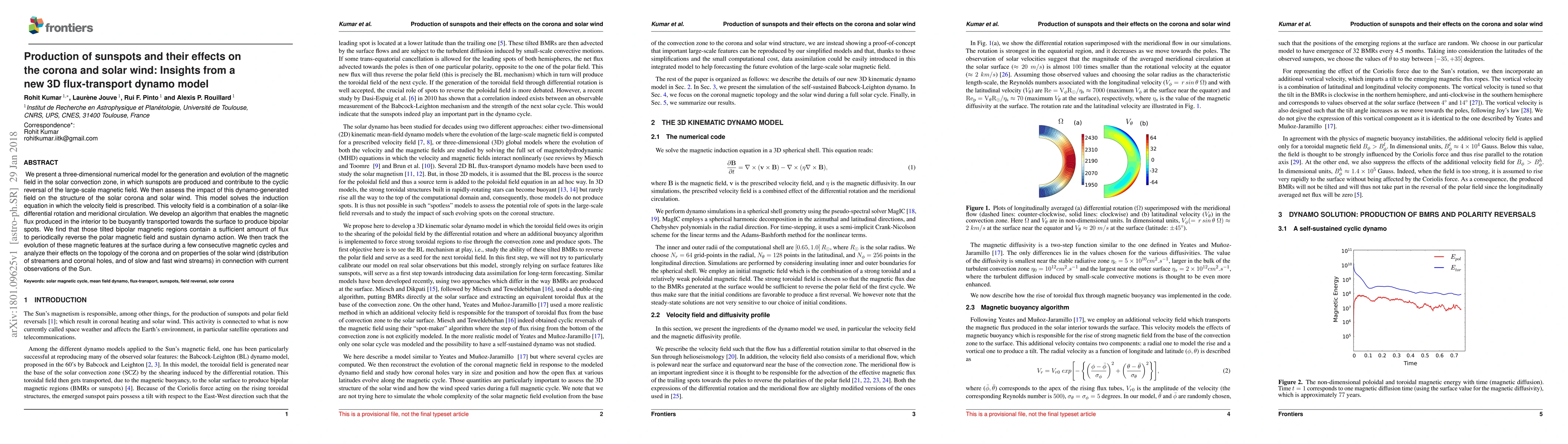 This paper presents a 3D flux-transport dynamo model that simulates the generation and evolution of sunspots and their impact on the solar corona and solar wind, revealing how tilted bipolar magnetic regions influence the reversal of the polar magnetic field and affect coronal and wind structures.