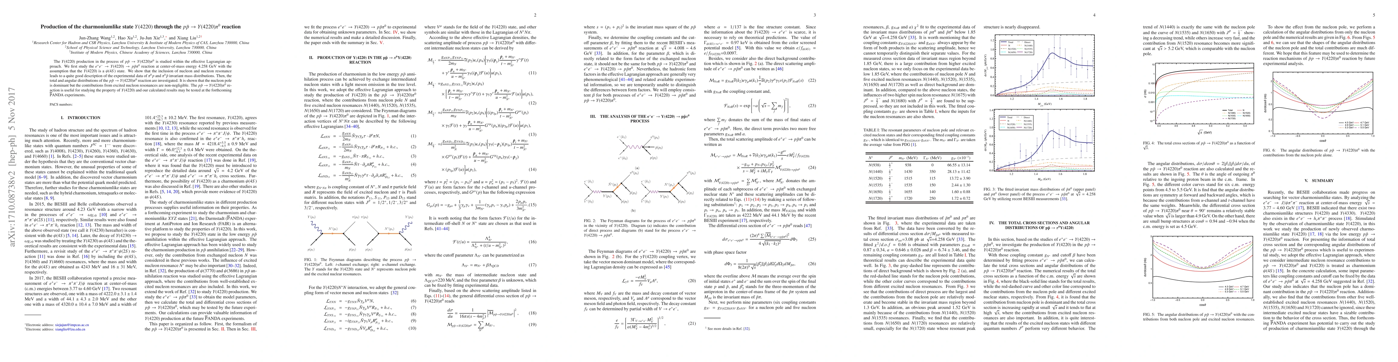 The $Y(4220)$ production in the process of $p\bar{p} \to Y(4220)\pi^0$ is studied within the effective Lagrangian approach. We first study the $e^+e^-\to Y(4220) \to p\bar{p}\pi^0$ reaction at center-of-mass energy $4.258$ GeV with the assumption that the $Y(4220)$ is a $\psi(4S)$ state. We show that the inclusion of nucleon and nucleon resonance leads to a quite good description of the experimental data of $\pi^0 p$ and $\pi^0 \bar{p}$ invariant mass distributions. Then, the total and angular distributions of the $p\bar{p} \to Y(4220)\pi^0$ reaction are investigated. It is shown that the nucleon pole is dominant but the contributions from excited nucleon resonances are non-negligible. The $p\bar{p} \to Y(4220)\pi^0$ reaction is useful for studying the property of $Y(4220)$ and our calculated results may be tested at the forthcoming $\overline{\mbox{P}}$ANDA experiments.