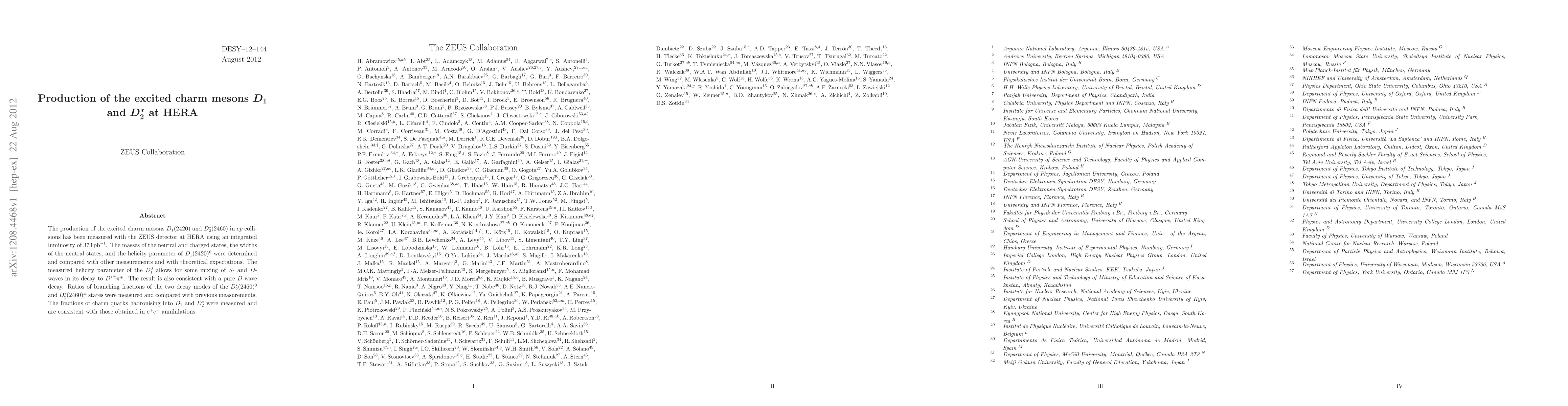 The production of the excited charm mesons D_1(2420) and D^*_2(2460) in ep collisions has been measured with the ZEUS detector at HERA using an integrated luminosity of 373 pb^{-1}. The masses of the neutral and charged states, the widths of the neutral states, and the helicity parameter of D_1(2420)^{0} were determined and compared with other measurements and with theoretical expectations. The measured helicity parameter of the D^0_1 allows for some mixing of S- and D-waves in its decay to D^{*\pm}\pi^{\mp}. The result is also consistent with a pure D-wave decay. Ratios of branching fractions of the two decay modes of the D^*_2(2460)^0 and D^*_2(2460)^{\pm} states were measured and compared with previous measurements. The fractions of charm quarks hadronising into D_1 and D^{*}_2 were measured and are consistent with those obtained in e^+ e^- annihilations.