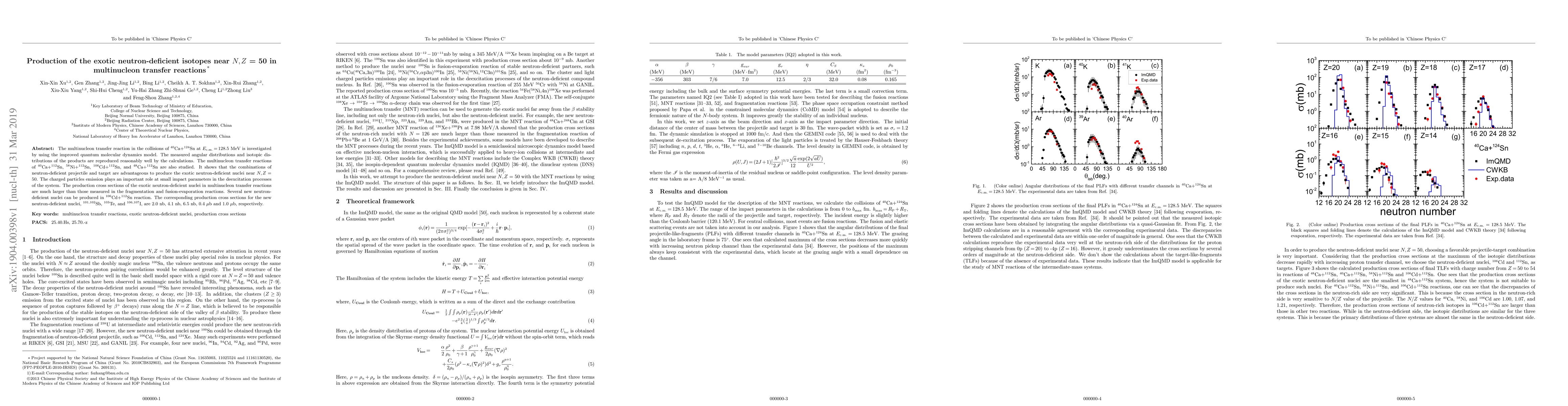 This paper investigates multinucleon transfer reactions using various combinations of neutron-deficient projectiles and targets, finding that these combinations are effective for producing exotic neutron-deficient nuclei near N, Z = 50. The study highlights that charged particles emission significantly influences the deexcitation processes, and the production cross sections for these nuclei are notably higher than those from fragmentation and fusion-evaporation reactions.