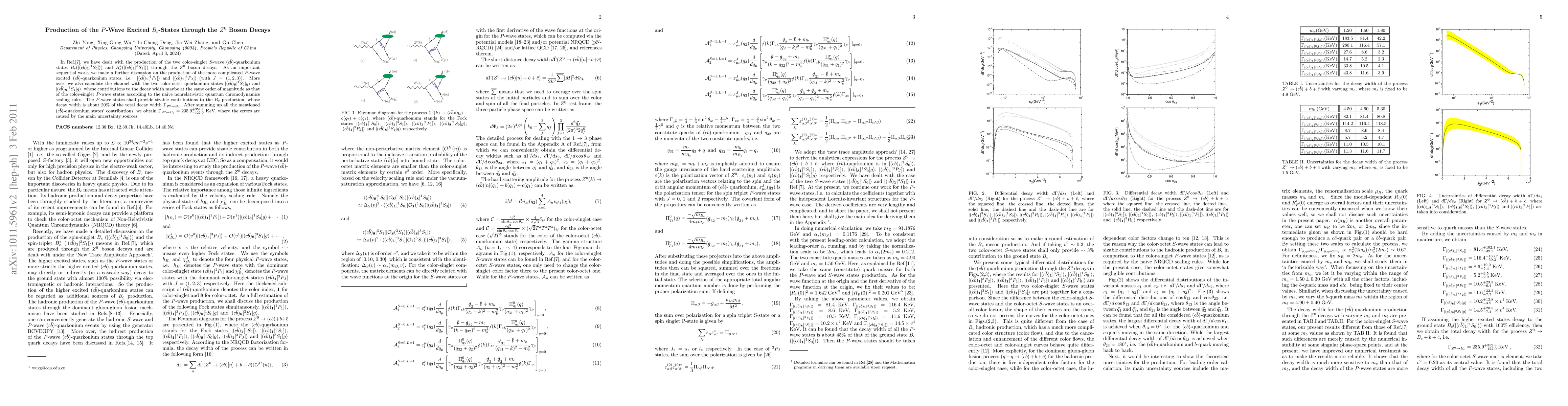 In Ref.[7],we have dealt with the production of the two color-singlet $S$-wave $(c\bar{b})$-quarkonium states $B_c(|(c\bar{b})_{\bf 1}[^1S_0]>)$ and $B^*_c(|(c\bar{b})_{\bf 1}[^3S_1]>)$ through the $Z^0$ boson decays. As an important sequential work, we make a further discussion on the production of the more complicated $P$-wave excited $(c\bar{b})$-quarkonium states, i.e. $|(c\bar{b})_{\bf 1}[^1P_1]>$ and $|(c\bar{b})_{\bf 1}[^3P_J]>$ (with $J=(1,2,3)$). More over, we also calculate the channel with the two color-octet quarkonium states $|(c\bar{b})_{\bf 8}[^1S_0]g>$ and $|(c\bar{b})_{\bf 8}[^3S_1]g>$, whose contributions to the decay width maybe at the same order of magnitude as that of the color-singlet $P$-wave states according to the naive nonrelativistic quantum chromodynamics scaling rules. The $P$-wave states shall provide sizable contributions to the $B_c$ production, whose decay width is about 20% of the total decay width $\Gamma_{Z^0\to B_c}$. After summing up all the mentioned $(c\bar{b})$-quarkonium states' contributions, we obtain $\Gamma_{Z^0\to B_c} =235.9^{+352.8}_{-122.0}$ KeV, where the errors are caused by the main uncertainty sources.