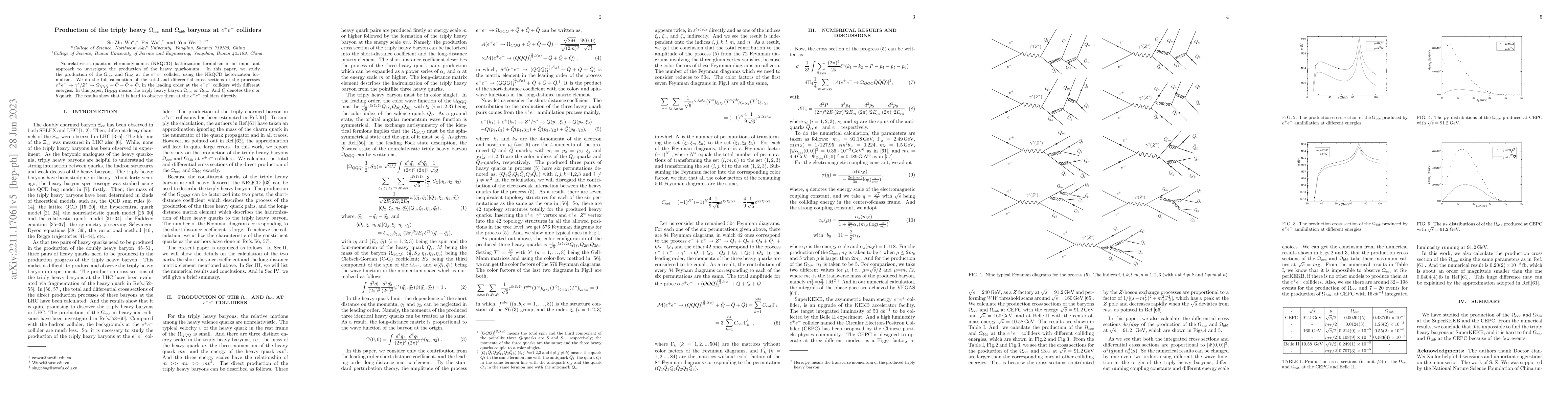 This paper investigates the production of the triply heavy baryons $\Omega_{ccc}$ and $\Omega_{bbb}$ at $e^+e^-$ colliders using NRQCD factorization. The study calculates total and differential cross sections for the processes $e^+e^-\rightarrow \Omega_{ccc}\bar{c}\bar{c}\bar{c}$ and $e^+e^-\rightarrow \Omega_{bbb}\bar{b}\bar{b}\bar{b}$ in the leading order, finding it challenging to observe these baryons directly at the $e^+e^-$ collider.