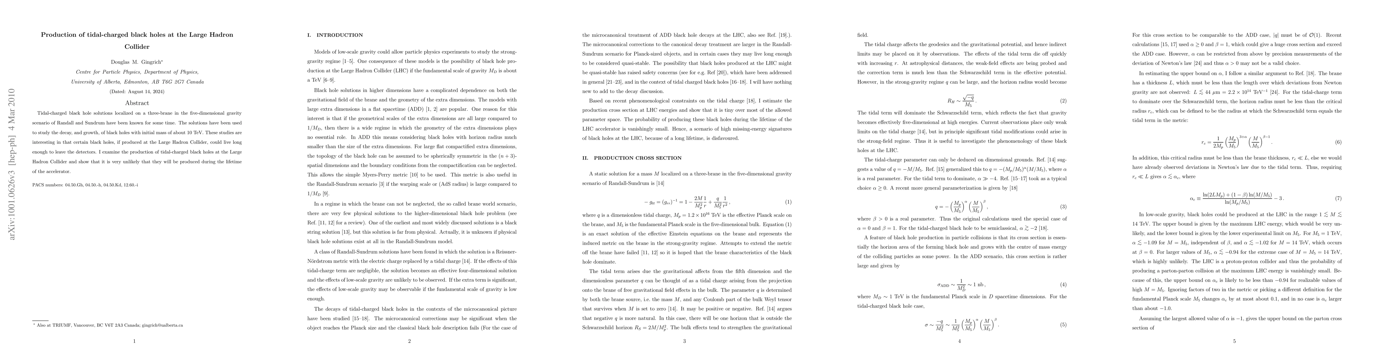 Tidal-charged black hole solutions localized on a three-brane in the five-dimensional gravity scenario of Randall and Sundrum have been known for some time. The solutions have been used to study the decay, and growth, of black holes with initial mass of about 10 TeV. These studies are interesting in that certain black holes, if produced at the Large Hadron Collider, could live long enough to leave the detectors. I examine the production of tidal-charged black holes at the Large Hadron Collider and show that it is very unlikely that they will be produced during the lifetime of the accelerator.