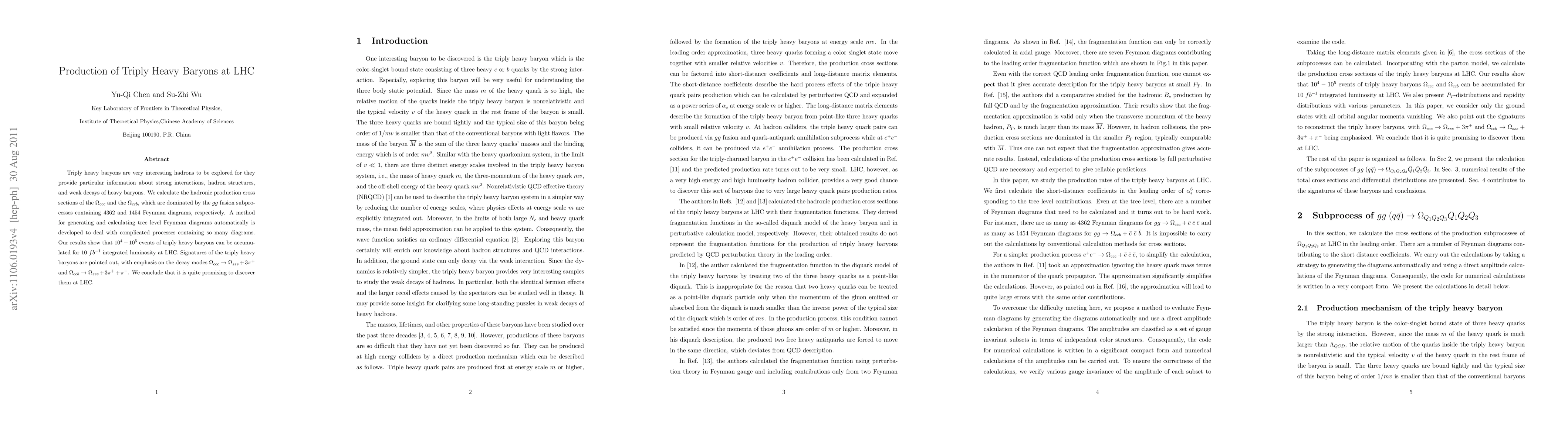 This paper investigates the production of triply heavy baryons, \Omega_{ccc} and \Omega_{ccb}, at the LHC, revealing promising prospects for their discovery. Utilizing a novel method for generating Feynman diagrams, the study estimates the production cross sections and predicts the accumulation of 10^4-10^5 events for 10 fb^{-1} of integrated luminosity, highlighting specific decay signatures for detection.