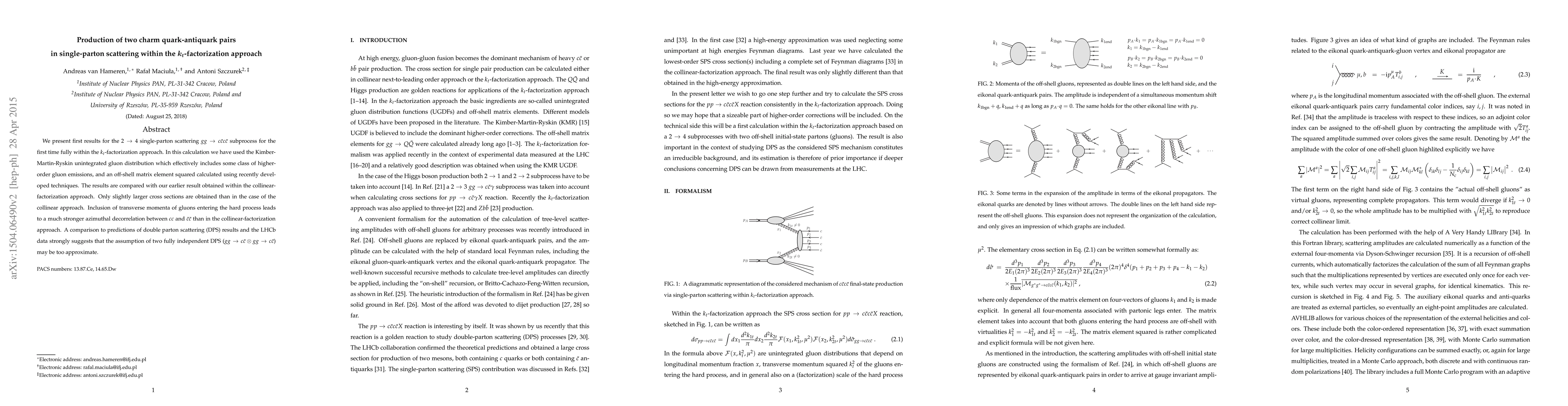 This paper presents the first results for the $2 \to 4$ single-parton scattering $g g \to c \bar c c \bar c$ within the $k_t$-factorization approach, showing slightly larger cross sections compared to the collinear-factorization approach. The study highlights stronger azimuthal decorrelation due to gluon transverse momenta and suggests that the assumption of fully independent double parton scattering may be inaccurate.