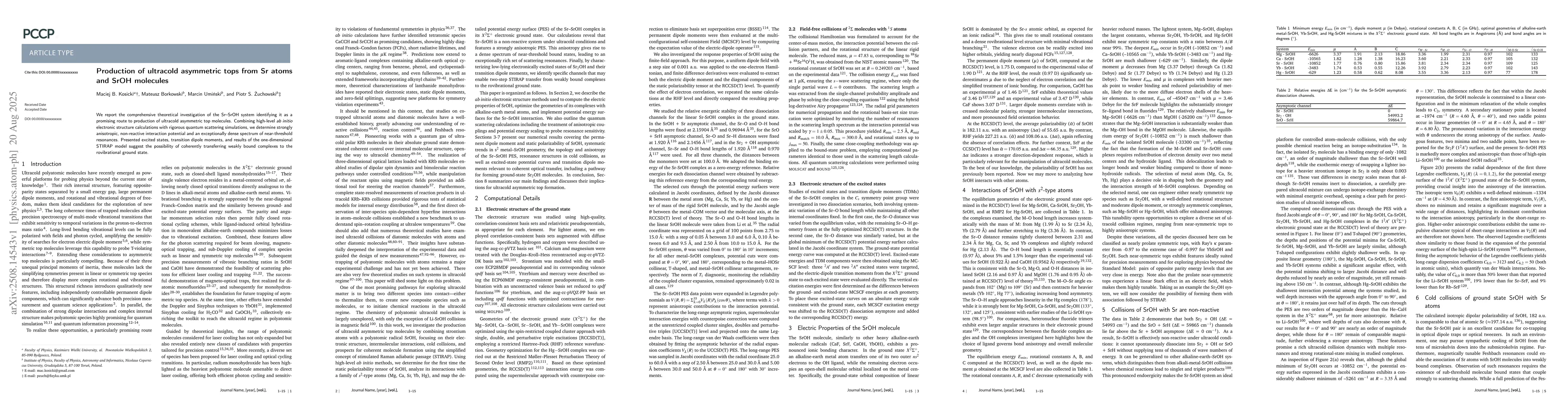 The paper presents a comprehensive theoretical investigation of the Sr-SrOH system, determining its interaction potential and near-threshold resonances, and proposing a pathway for producing ultracold asymmetric top molecules via STIRAP.