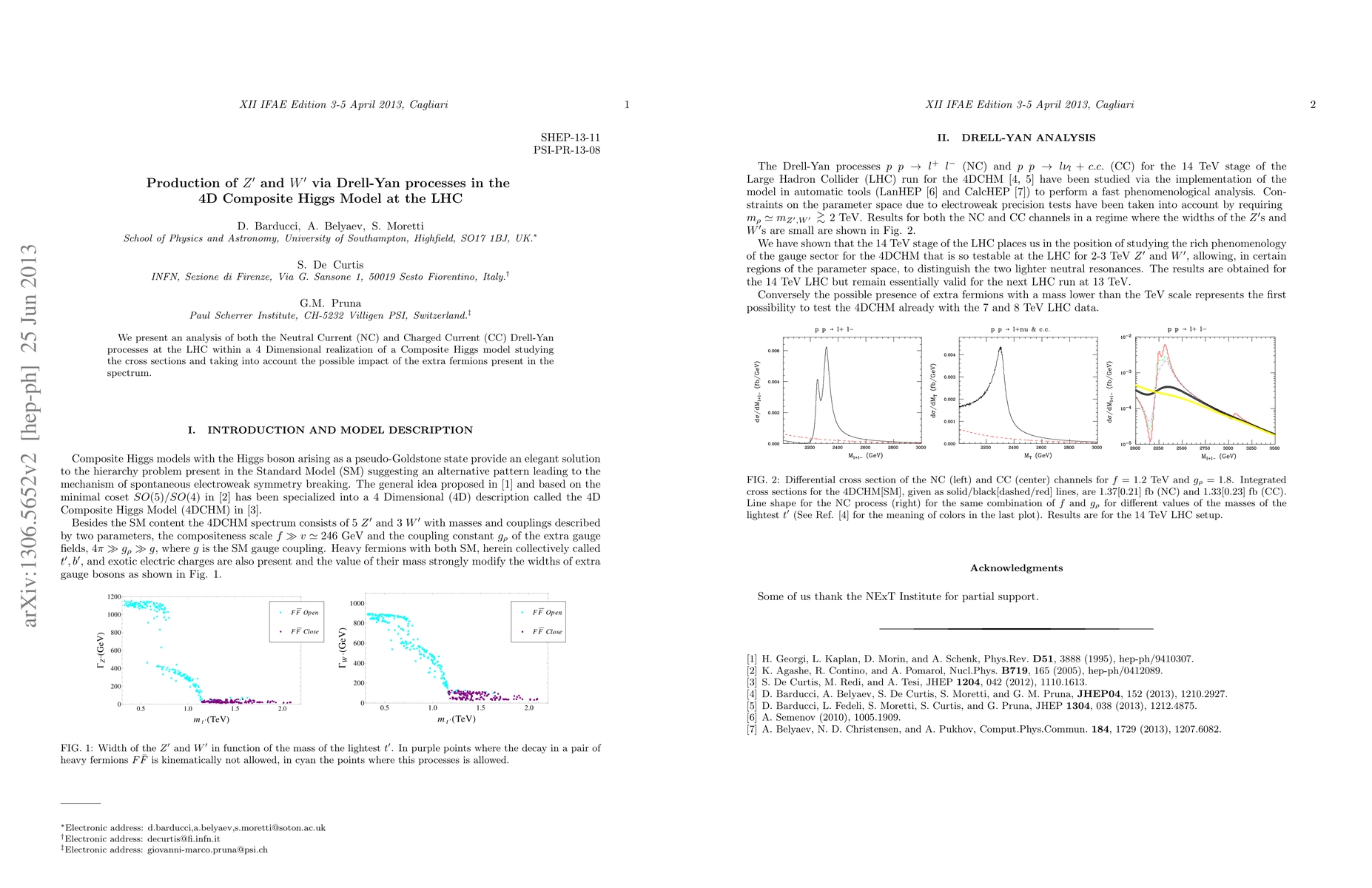 We present an analysis of both the Neutral Current (NC) and Charged Current (CC) Drell-Yan processes at the LHC within a 4 Dimensional realization of a Composite Higgs model studying the cross sections and taking into account the possible impact of the extra fermions present in the spectrum.