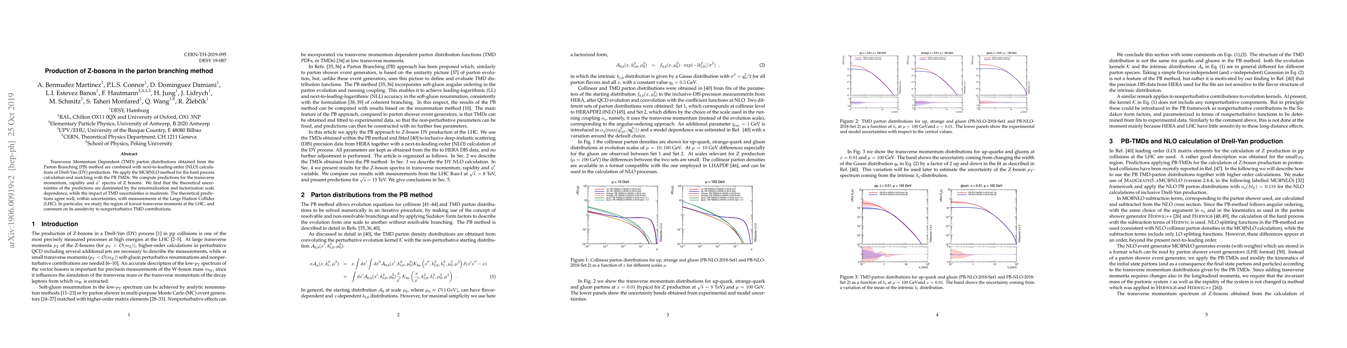 Transverse Momentum Dependent (TMD) parton distributions obtained from the Parton Branching (PB) method are combined with next-to-leading-order (NLO) calculations of Drell-Yan (DY) production. We apply the MCatNLO method for the hard process calculation and matching with the PB TMDs. We compute predictions for the transverse momentum, rapidity and $\phi^*$ spectra of Z-bosons. We find that the theoretical uncertainties of the predictions are dominated by the renormalization and factorization scale dependence, while the impact of TMD uncertainties is moderate. The theoretical predictions agree well, within uncertainties, with measurements at the Large Hadron Collider (LHC). In particular, we study the region of lowest transverse momenta at the LHC, and comment on its sensitivity to nonperturbative TMD contributions.
