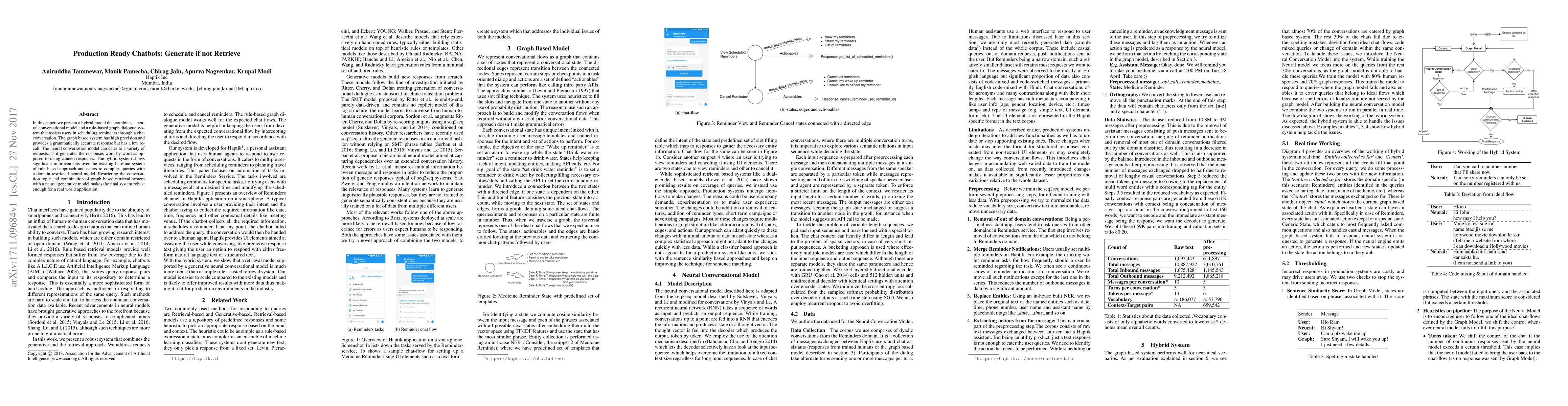 In this paper, we present a hybrid model that combines a neural conversational model and a rule-based graph dialogue system that assists users in scheduling reminders through a chat conversation. The graph based system has high precision and provides a grammatically accurate response but has a low recall. The neural conversation model can cater to a variety of requests, as it generates the responses word by word as opposed to using canned responses. The hybrid system shows significant improvements over the existing baseline system of rule based approach and caters to complex queries with a domain-restricted neural model. Restricting the conversation topic and combination of graph based retrieval system with a neural generative model makes the final system robust enough for a real world application.