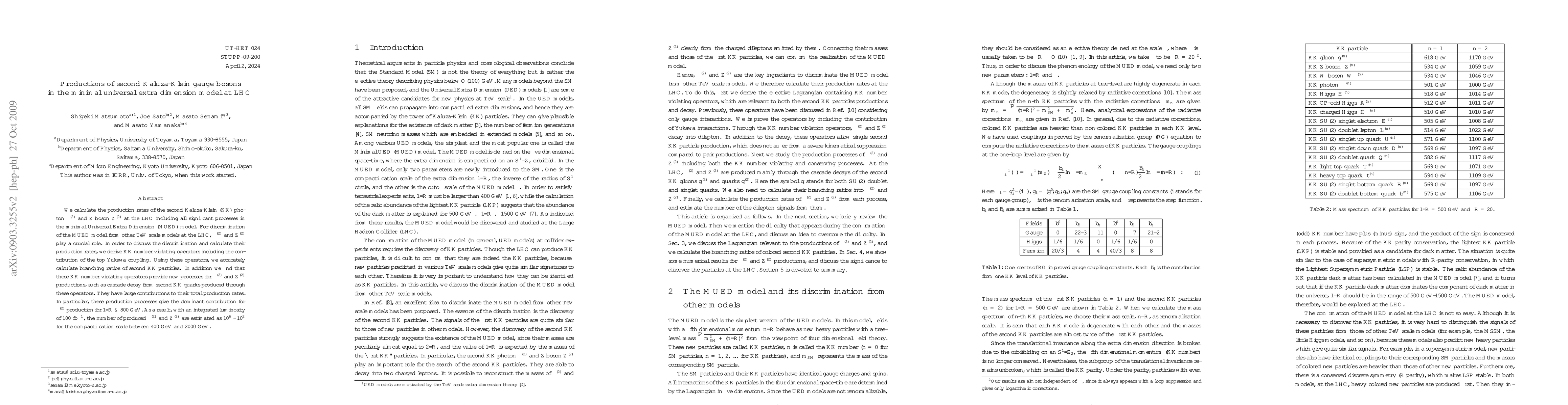 We calculate the production rates of the second Kaluza-Klein (KK) photon $\gamma^{(2)}$ and Z boson $Z^{(2)}$ at the LHC including all significant processes in the minimal Universal Extra Dimension (MUED) model. For discrimination of the MUED model from other TeV scale models at the LHC, $\gamma^{(2)}$ and $Z^{(2)}$ play a crucial role. In order to discuss the discrimination and calculate their production rates, we derive KK number violating operators including the contribution of the top Yukawa coupling. Using these operators, we accurately calculate branching ratios of second KK particles. In addition we find that these KK number violating operators provide new processes for $\gamma^{(2)}$ and $Z^{(2)}$ productions, such as cascade decay from second KK quarks produced through these operators. They have large contributions to their total production rates. In particular, these production processes give the dominant contribution for $\gamma^{(2)}$ production for $1/R \gtrsim 800$ GeV. As a result, with an integrated luminosity of 100 fb$^{-1}$, the number of produced $\gamma^{(2)}$ and $Z^{(2)}$ are estimated as 10$^6$ - 10$^2$ for the compactification scale between 400 GeV and 2000 GeV.