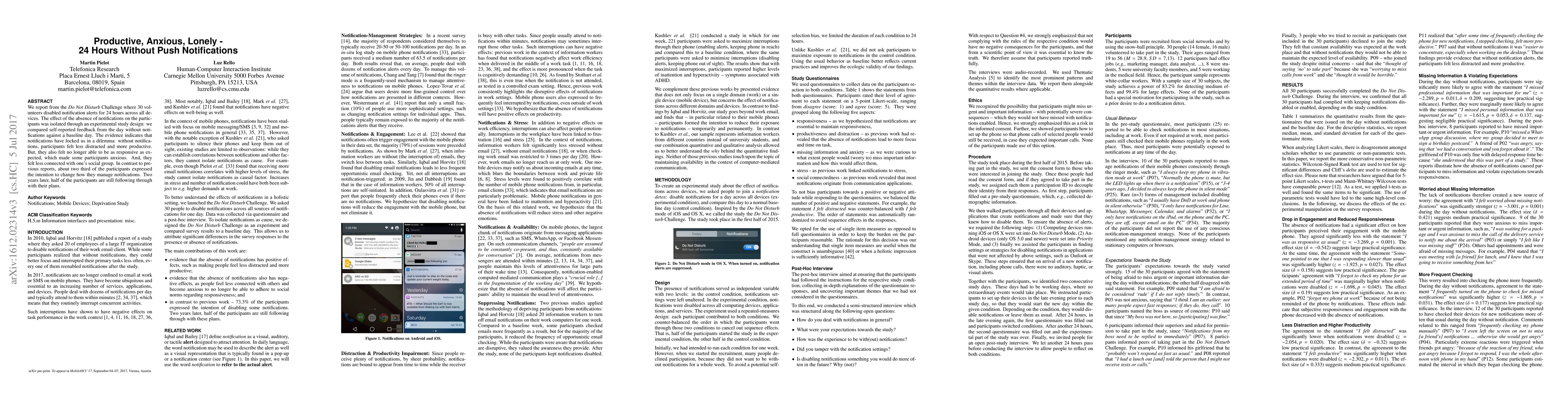 We report from the Do Not Disturb Challenge where 30 volunteers disabled notification alerts for 24 hours across all devices. The effect of the absence of notifications on the participants was isolated through an experimental study design: we compared self-reported feedback from the day without notifications against a baseline day. The evidence indicates that notifications have locked us in a dilemma: without notifications, participants felt less distracted and more productive. But, they also felt no longer able to be as responsive as expected, which made some participants anxious. And, they felt less connected with one's social group. In contrast to previous reports, about two third of the participants expressed the intention to change how they manage notifications. Two years later, half of the participants are still following through with their plans.