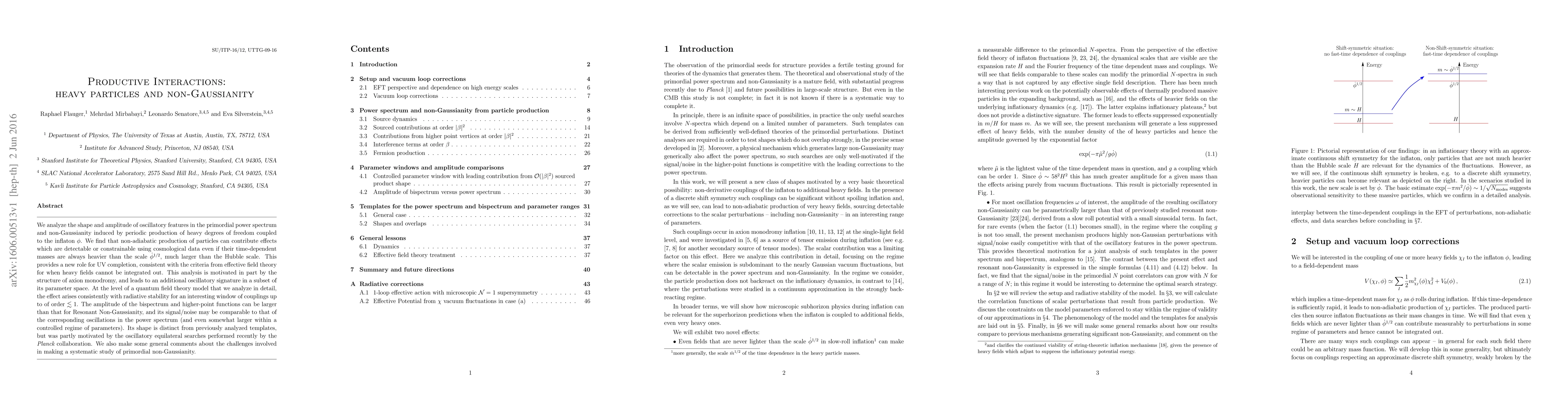 We analyze the shape and amplitude of oscillatory features in the primordial power spectrum and non-Gaussianity induced by periodic production of heavy degrees of freedom coupled to the inflaton $\phi$. We find that non-adiabatic production of particles can contribute effects which are detectable or constrainable using cosmological data even if their time-dependent masses are always heavier than the scale $\dot \phi^{1/2}$, much larger than the Hubble scale. This provides a new role for UV completion, consistent with the criteria from effective field theory for when heavy fields cannot be integrated out. This analysis is motivated in part by the structure of axion monodromy, and leads to an additional oscillatory signature in a subset of its parameter space. At the level of a quantum field theory model that we analyze in detail, the effect arises consistently with radiative stability for an interesting window of couplings up to of order $\lesssim 1$. The amplitude of the bispectrum and higher-point functions can be larger than that for Resonant Non-Gaussianity, and its signal/noise may be comparable to that of the corresponding oscillations in the power spectrum (and even somewhat larger within a controlled regime of parameters). Its shape is distinct from previously analyzed templates, but was partly motivated by the oscillatory equilateral searches performed recently by the {\it Planck} collaboration. We also make some general comments about the challenges involved in making a systematic study of primordial non-Gaussianity.