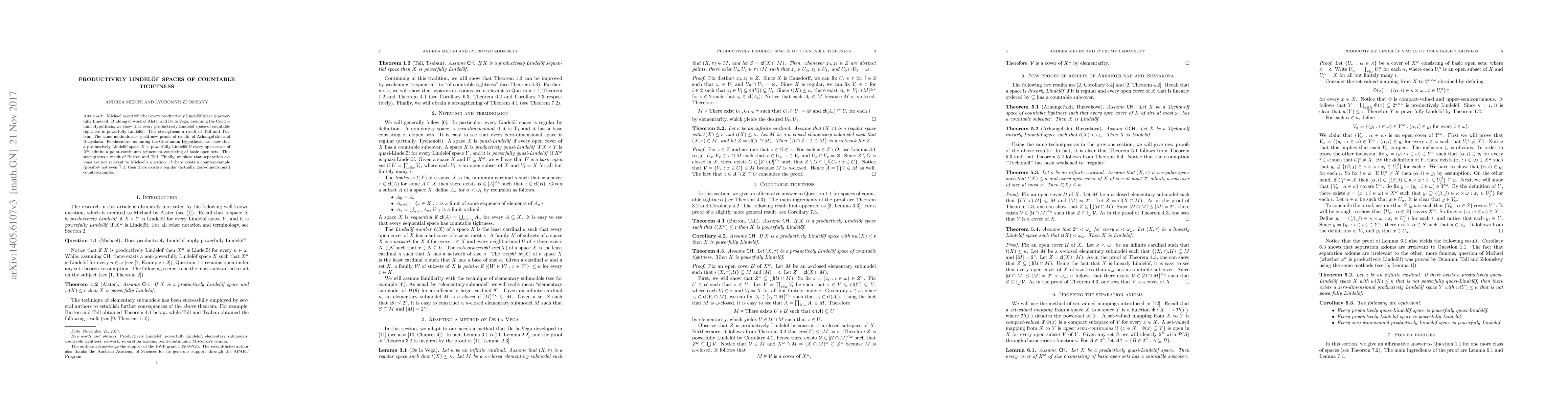 This paper demonstrates that under the Continuum Hypothesis, every productively Lindel\"of space with countable tightness is powerfully Lindel\"of, thus strengthening prior results by Tall and Tsaban. It also provides new proofs for theorems by Arkhangel'skii and Buzyakova and shows that separation axioms do not affect Michael's question on the topic.
