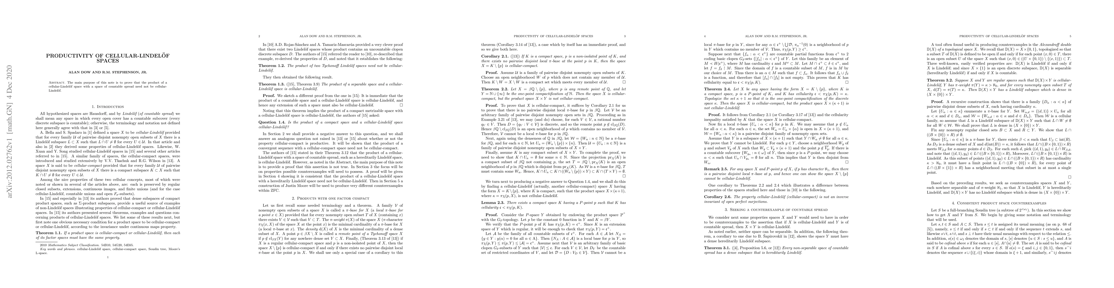 The main purpose of this note is to prove that the product of a cellular Lindelof space with a space of countable spread need not be cellular-Lindelof.