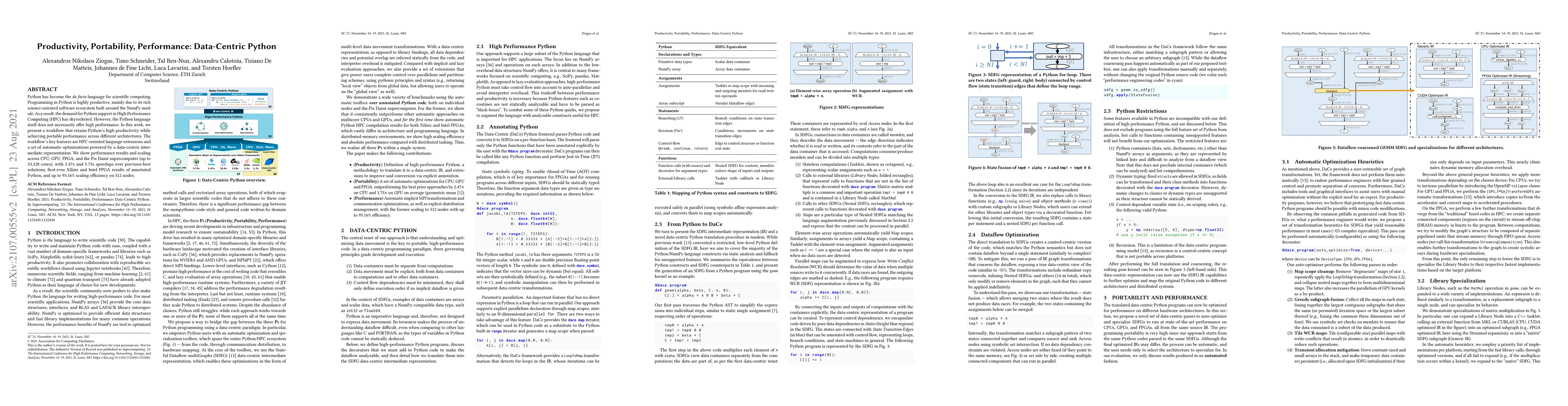 This paper presents a workflow to enhance Python's productivity in scientific computing while achieving high performance across various architectures through HPC-oriented language extensions and automatic optimizations using a data-centric intermediate representation, demonstrating significant speedups and scaling efficiency.